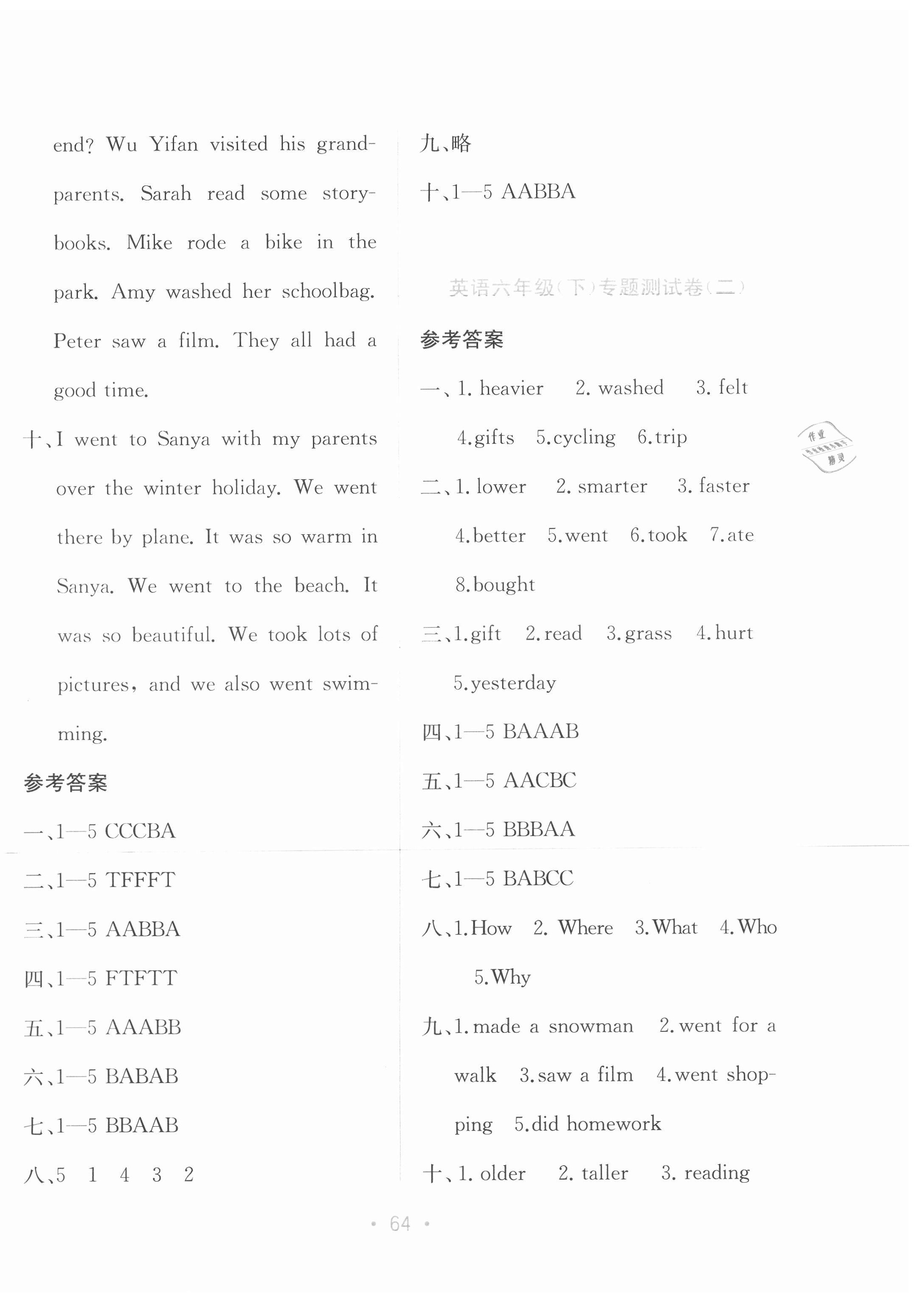注:目前有些书本章节名称可能整理的还不是很完善,但都是按照顺序排列的,请同学们按照顺序仔细查找。练习册 2021年全程检测单元测试卷六年级英语下册A版 答案主要是用来给同学们做完题方便对答案用的,请勿直接抄袭。