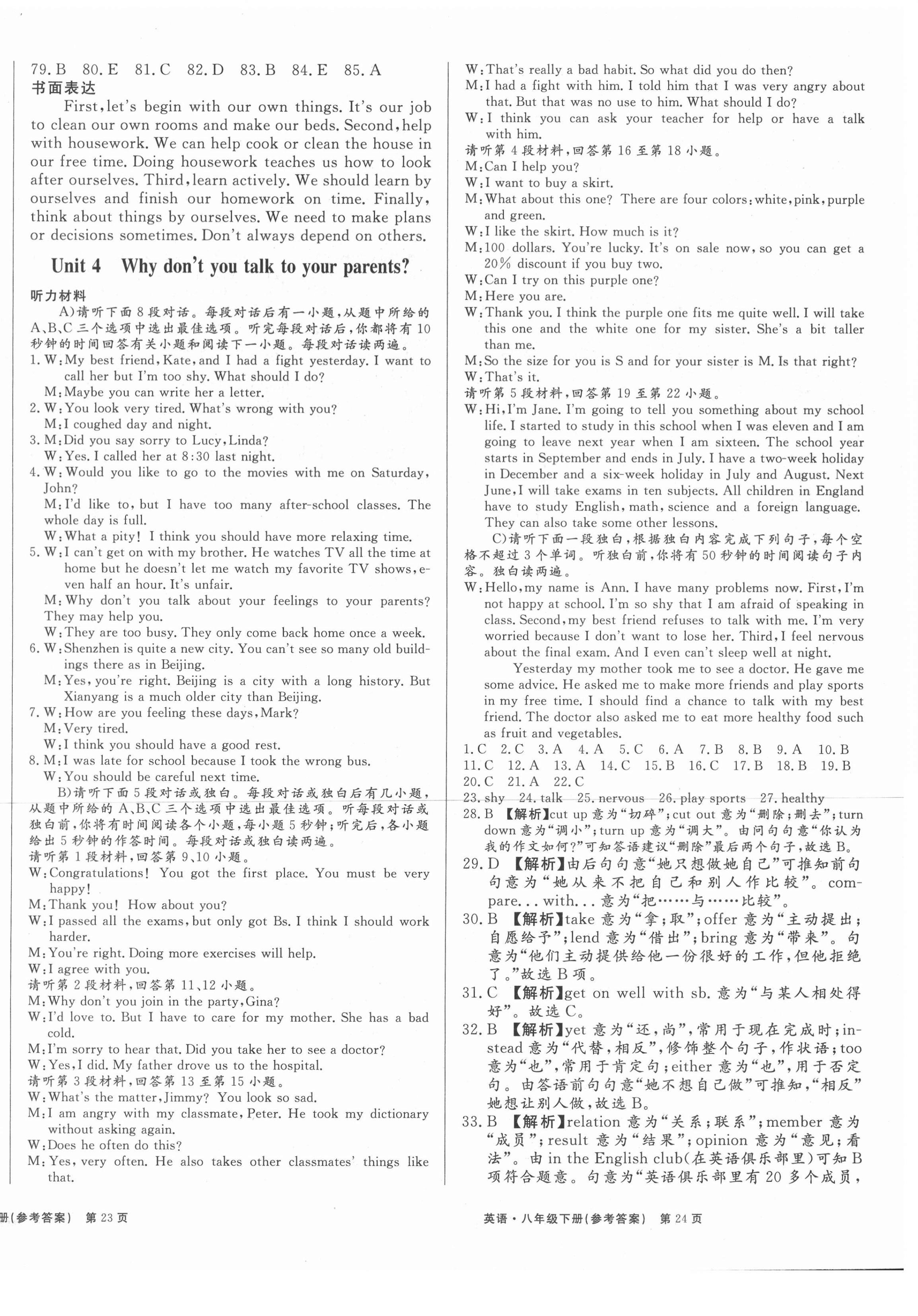 注:目前有些书本章节名称可能整理的还不是很完善,但都是按照顺序排列的,请同学们按照顺序仔细查找。练习册 2021年赢在新课堂八年级英语下册人教版江西专版 答案主要是用来给同学们做完题方便对答案用的,请勿直接抄袭。