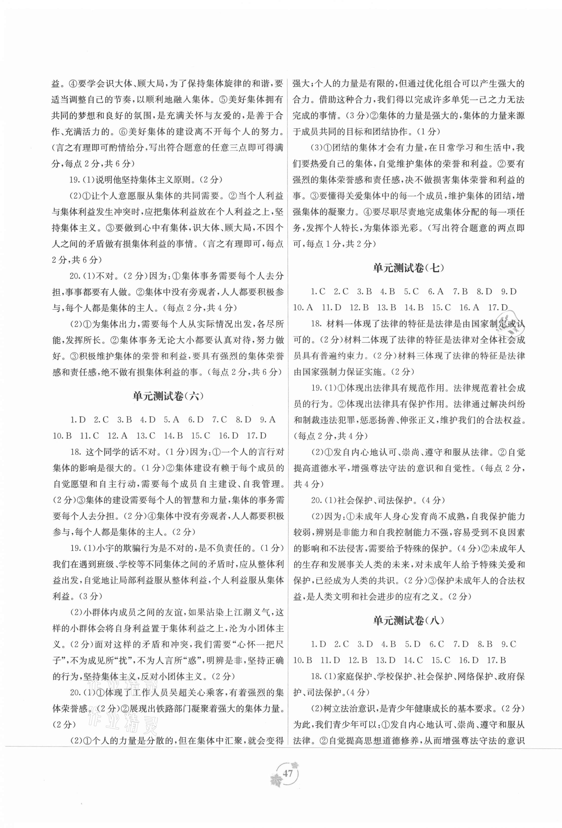 注:目前有些书本章节名称可能整理的还不是很完善,但都是按照顺序排列的,请同学们按照顺序仔细查找。练习册 2021年自主学习能力测评单元测试七年级道德与法治下册人教版A版 答案主要是用来给同学们做完题方便对答案用的,请勿直接抄袭。