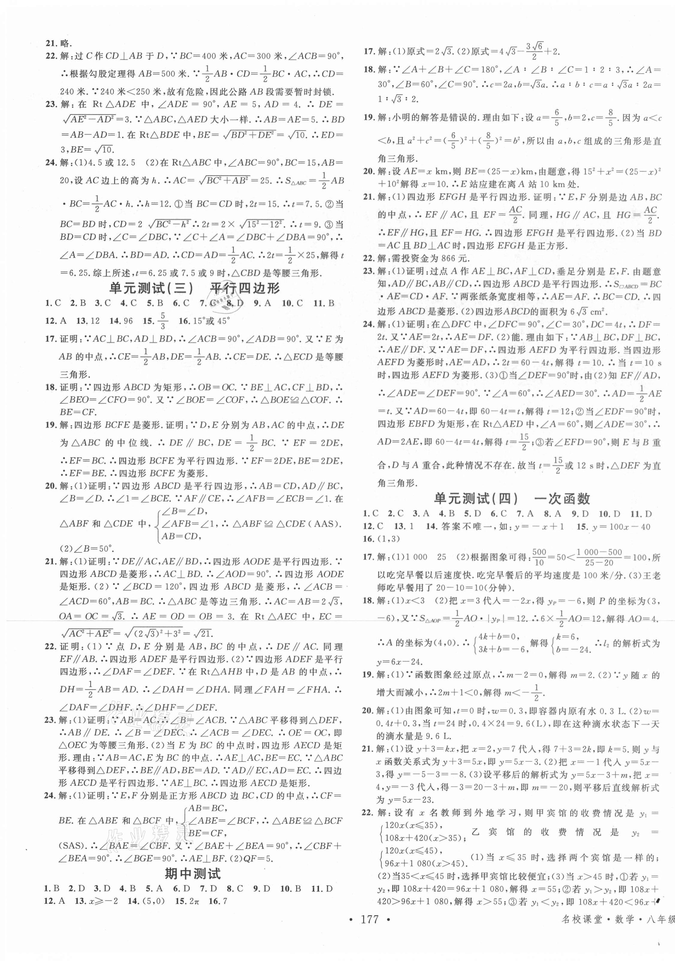 2021年名校课堂八年级数学下册人教版3遵义专版