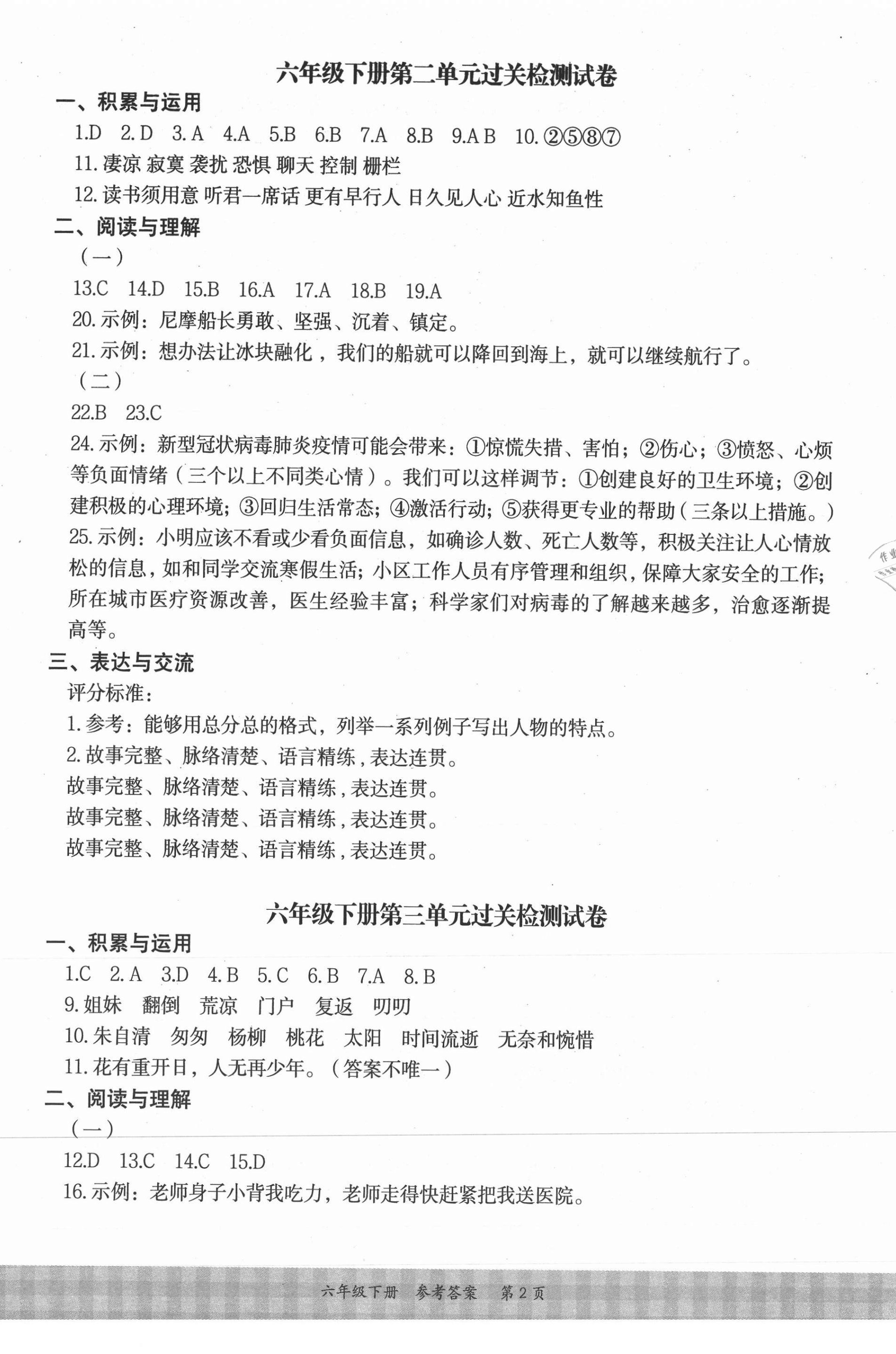 注:目前有些书本章节名称可能整理的还不是很完善,但都是按照顺序排列的,请同学们按照顺序仔细查找。练习册 2021年小学语文要素课课通六年级下册人教版 答案主要是用来给同学们做完题方便对答案用的,请勿直接抄袭。