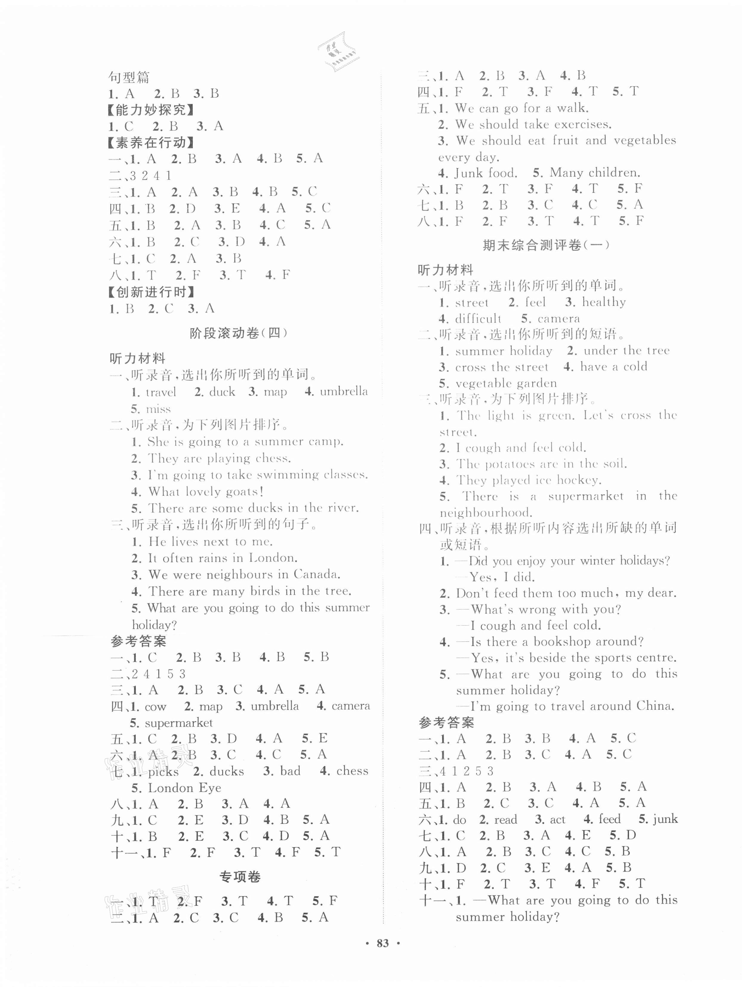 注:目前有些书本章节名称可能整理的还不是很完善,但都是按照顺序排列的,请同学们按照顺序仔细查找。练习册 2021年小学同步练习册分层卷五年级英语下册鲁科版54制 答案主要是用来给同学们做完题方便对答案用的,请勿直接抄袭。