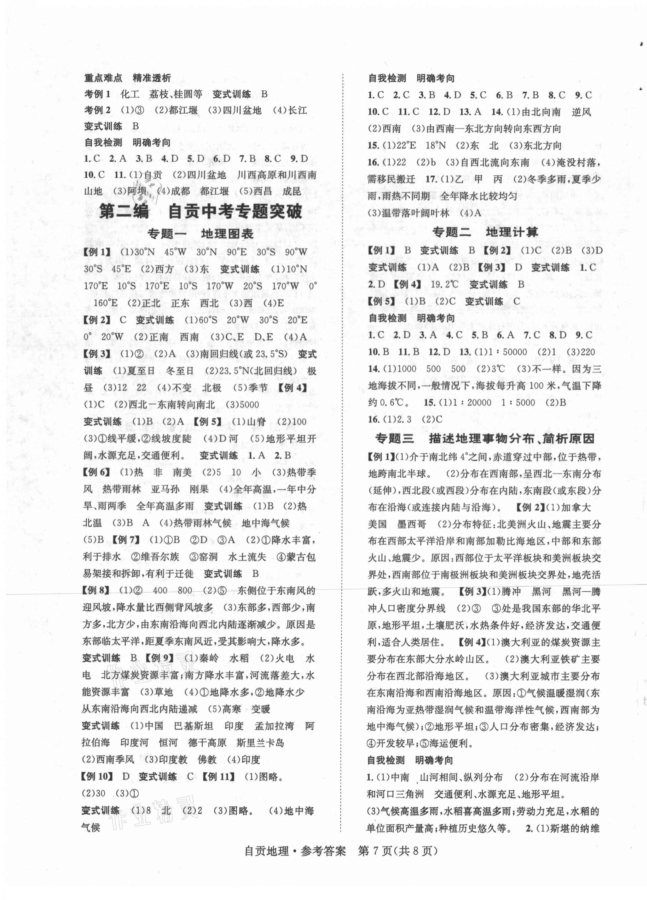 注:目前有些书本章节名称可能整理的还不是很完善,但都是按照顺序排列的,请同学们按照顺序仔细查找。练习册 2021年中考2号地理自贡专版 答案主要是用来给同学们做完题方便对答案用的,请勿直接抄袭。
