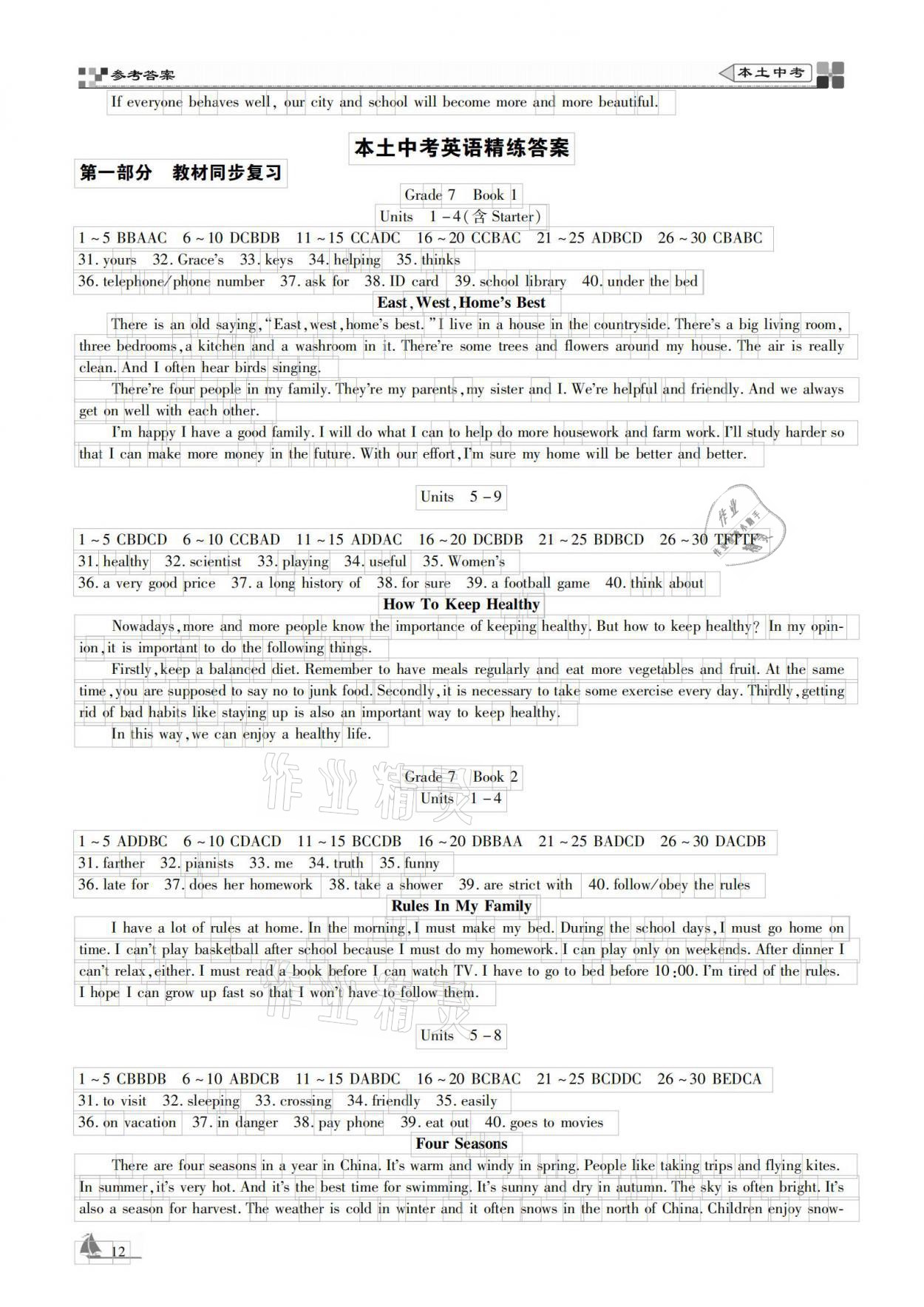 注:目前有些书本章节名称可能整理的还不是很完善,但都是按照顺序排列的,请同学们按照顺序仔细查找。练习册 2021年云南本土好学生本土中考英语 答案主要是用来给同学们做完题方便对答案用的,请勿直接抄袭。