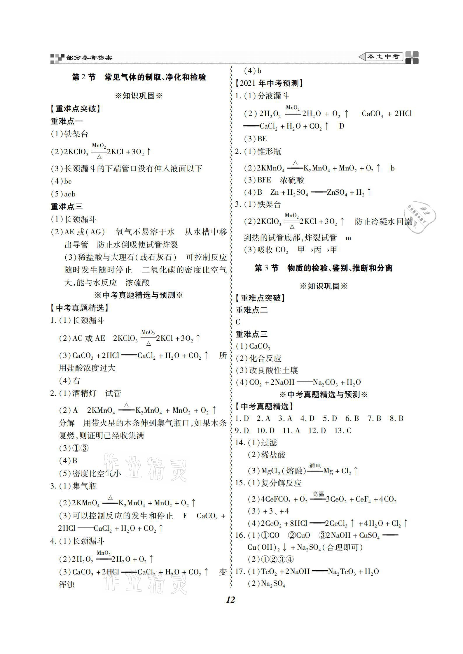 注:目前有些书本章节名称可能整理的还不是很完善,但都是按照顺序排列的,请同学们按照顺序仔细查找。练习册 2021年云南本土好学生本土中考化学 答案主要是用来给同学们做完题方便对答案用的,请勿直接抄袭。