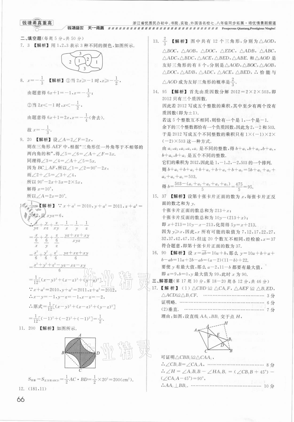 注:目前有些书本章节名称可能整理的还不是很完善,但都是按照顺序排列的,请同学们按照顺序仔细查找。练习册 2021年钱塘甬真重高七年级数学全一册浙教版 答案主要是用来给同学们做完题方便对答案用的,请勿直接抄袭。