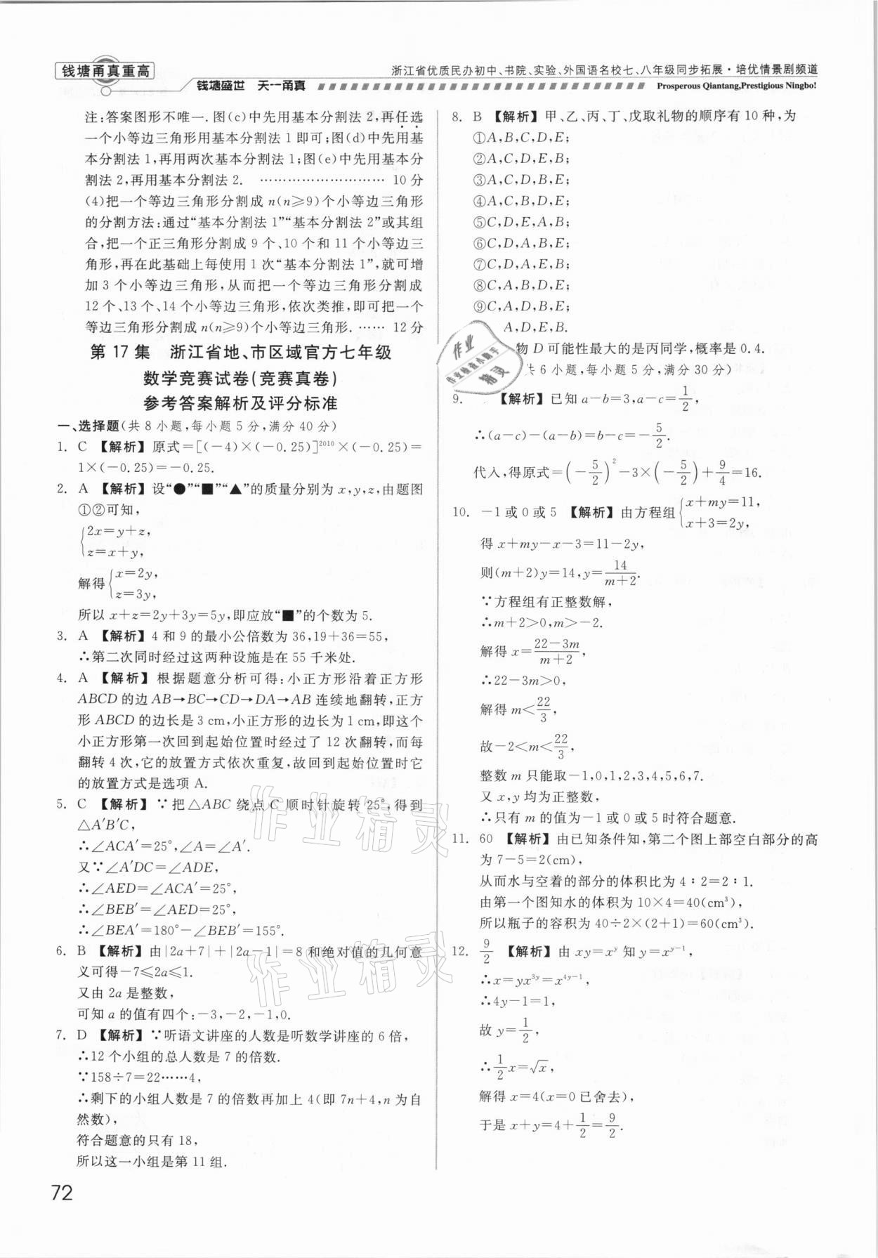 注:目前有些书本章节名称可能整理的还不是很完善,但都是按照顺序排列的,请同学们按照顺序仔细查找。练习册 2021年钱塘甬真重高七年级数学全一册浙教版 答案主要是用来给同学们做完题方便对答案用的,请勿直接抄袭。
