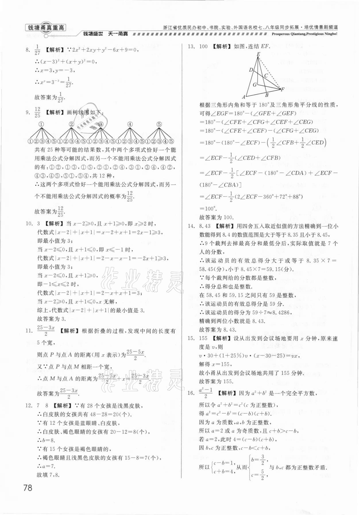 注:目前有些书本章节名称可能整理的还不是很完善,但都是按照顺序排列的,请同学们按照顺序仔细查找。练习册 2021年钱塘甬真重高七年级数学全一册浙教版 答案主要是用来给同学们做完题方便对答案用的,请勿直接抄袭。