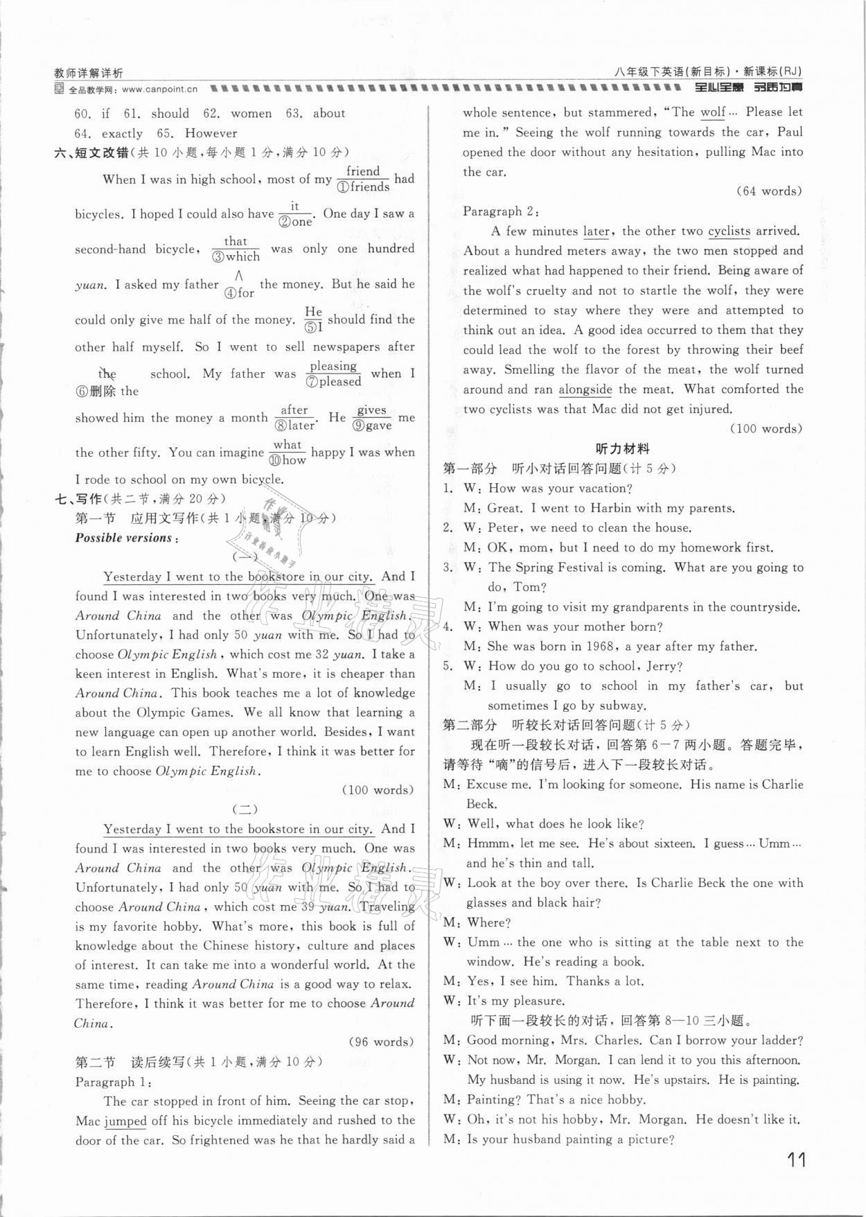 注:目前有些书本章节名称可能整理的还不是很完善,但都是按照顺序排列的,请同学们按照顺序仔细查找。练习册 2021年钱塘甬真重高八年级英语全一册人教版 答案主要是用来给同学们做完题方便对答案用的,请勿直接抄袭。