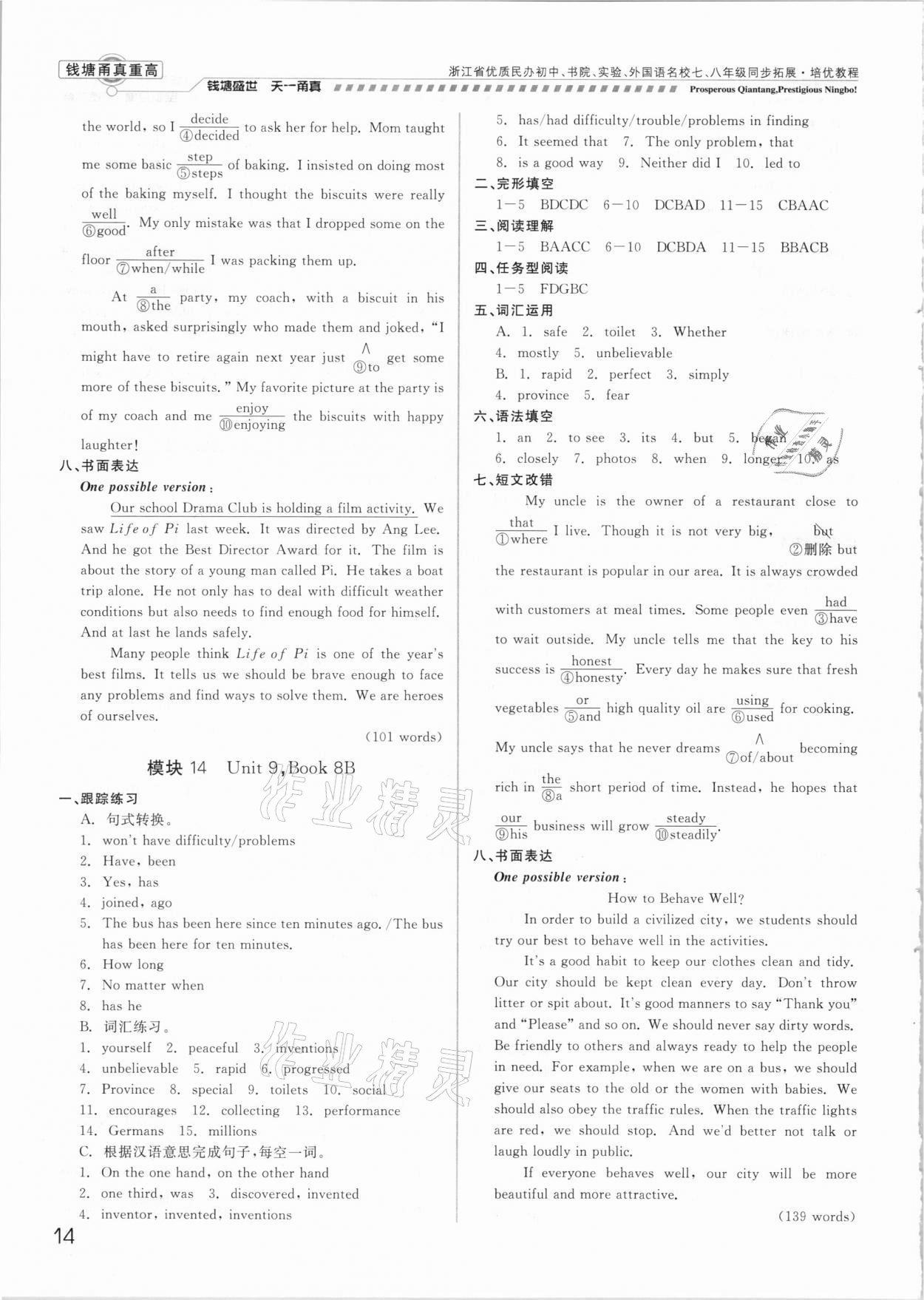 注:目前有些书本章节名称可能整理的还不是很完善,但都是按照顺序排列的,请同学们按照顺序仔细查找。练习册 2021年钱塘甬真重高八年级英语全一册人教版 答案主要是用来给同学们做完题方便对答案用的,请勿直接抄袭。