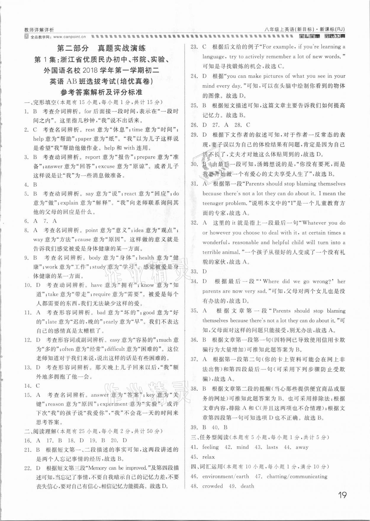 注:目前有些书本章节名称可能整理的还不是很完善,但都是按照顺序排列的,请同学们按照顺序仔细查找。练习册 2021年钱塘甬真重高八年级英语全一册人教版 答案主要是用来给同学们做完题方便对答案用的,请勿直接抄袭。