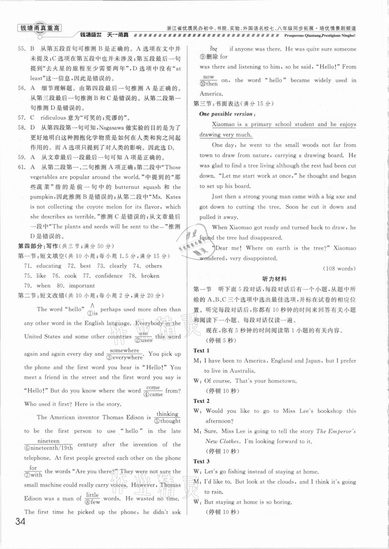 注:目前有些书本章节名称可能整理的还不是很完善,但都是按照顺序排列的,请同学们按照顺序仔细查找。练习册 2021年钱塘甬真重高八年级英语全一册人教版 答案主要是用来给同学们做完题方便对答案用的,请勿直接抄袭。
