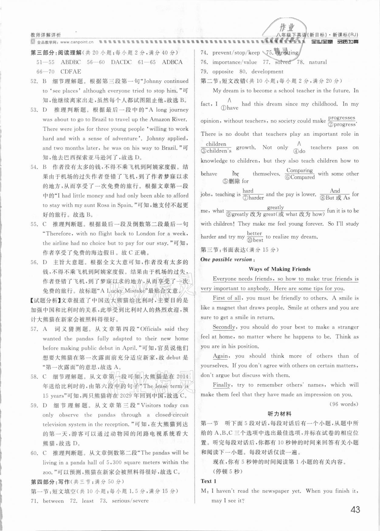 注:目前有些书本章节名称可能整理的还不是很完善,但都是按照顺序排列的,请同学们按照顺序仔细查找。练习册 2021年钱塘甬真重高八年级英语全一册人教版 答案主要是用来给同学们做完题方便对答案用的,请勿直接抄袭。