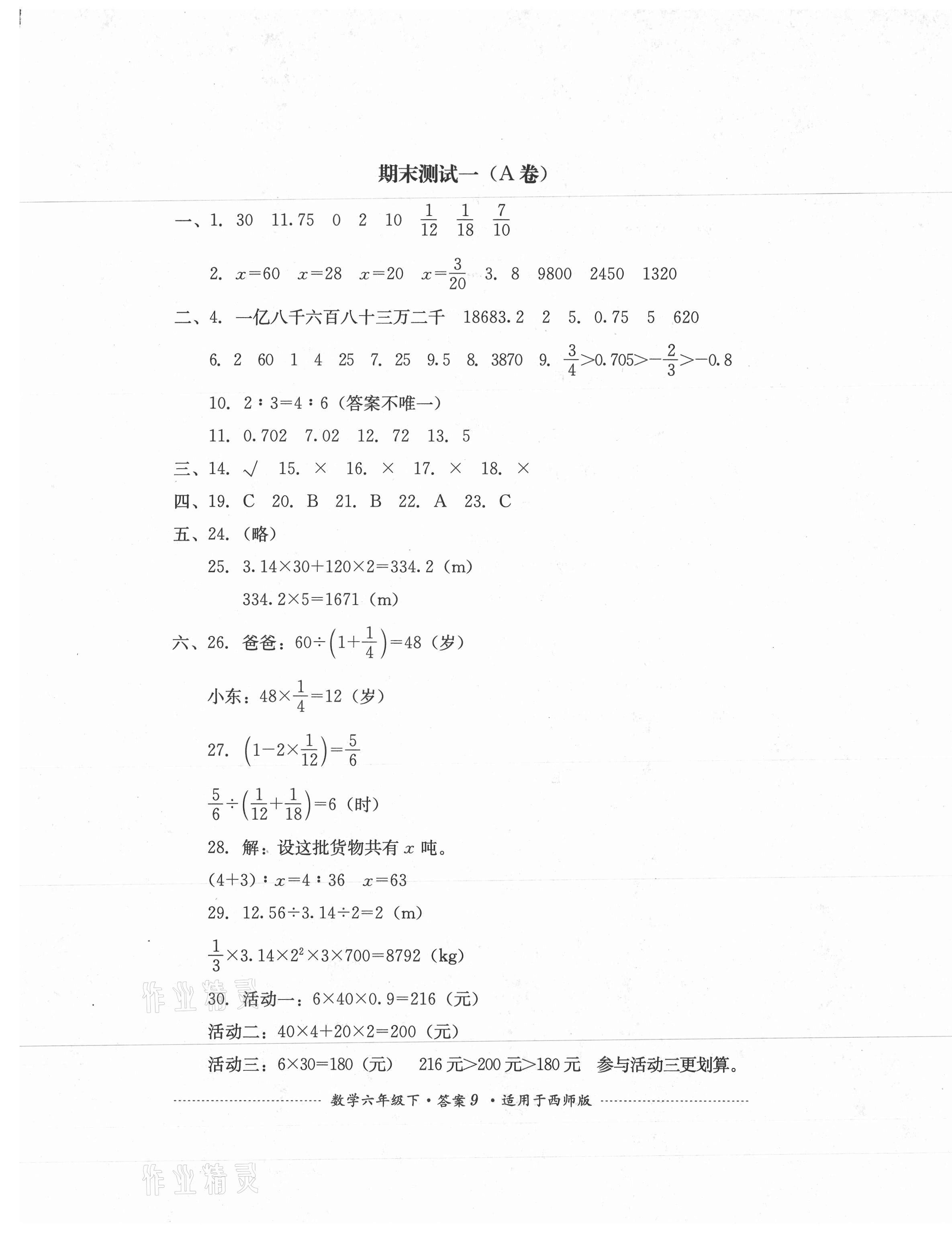 注:目前有些书本章节名称可能整理的还不是很完善,但都是按照顺序排列的,请同学们按照顺序仔细查找。练习册 2021年单元测试六年级数学下册西师大版四川教育出版社 答案主要是用来给同学们做完题方便对答案用的,请勿直接抄袭。