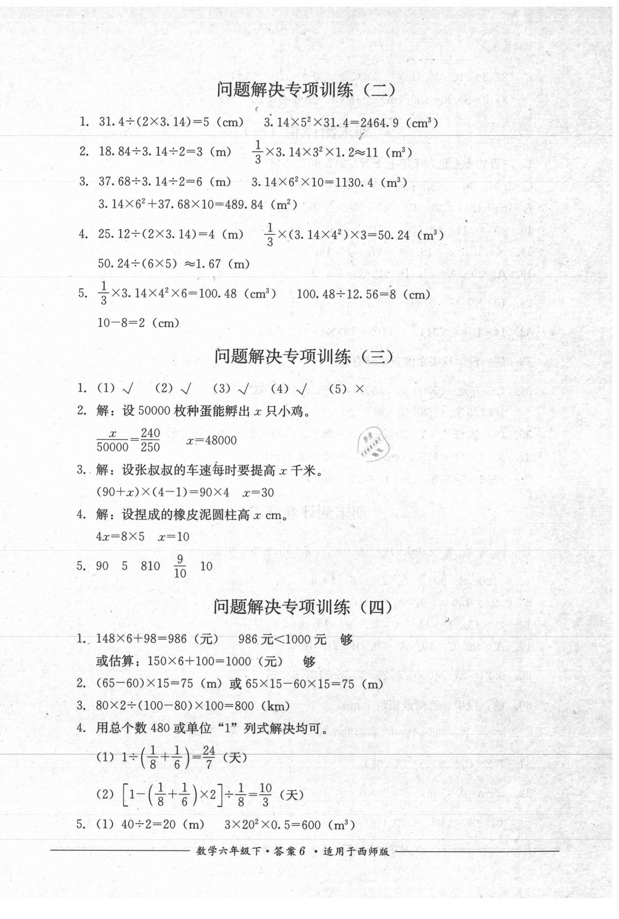 2021年单元测评六年级数学下册西师大版四川教育出版社