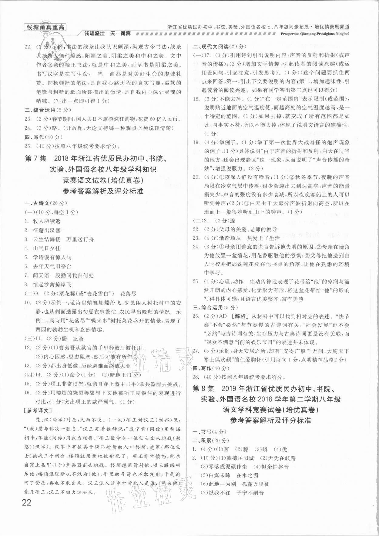 注:目前有些书本章节名称可能整理的还不是很完善,但都是按照顺序排列的,请同学们按照顺序仔细查找。练习册 2021年钱塘甬真重高八年级语文全一册人教版 答案主要是用来给同学们做完题方便对答案用的,请勿直接抄袭。