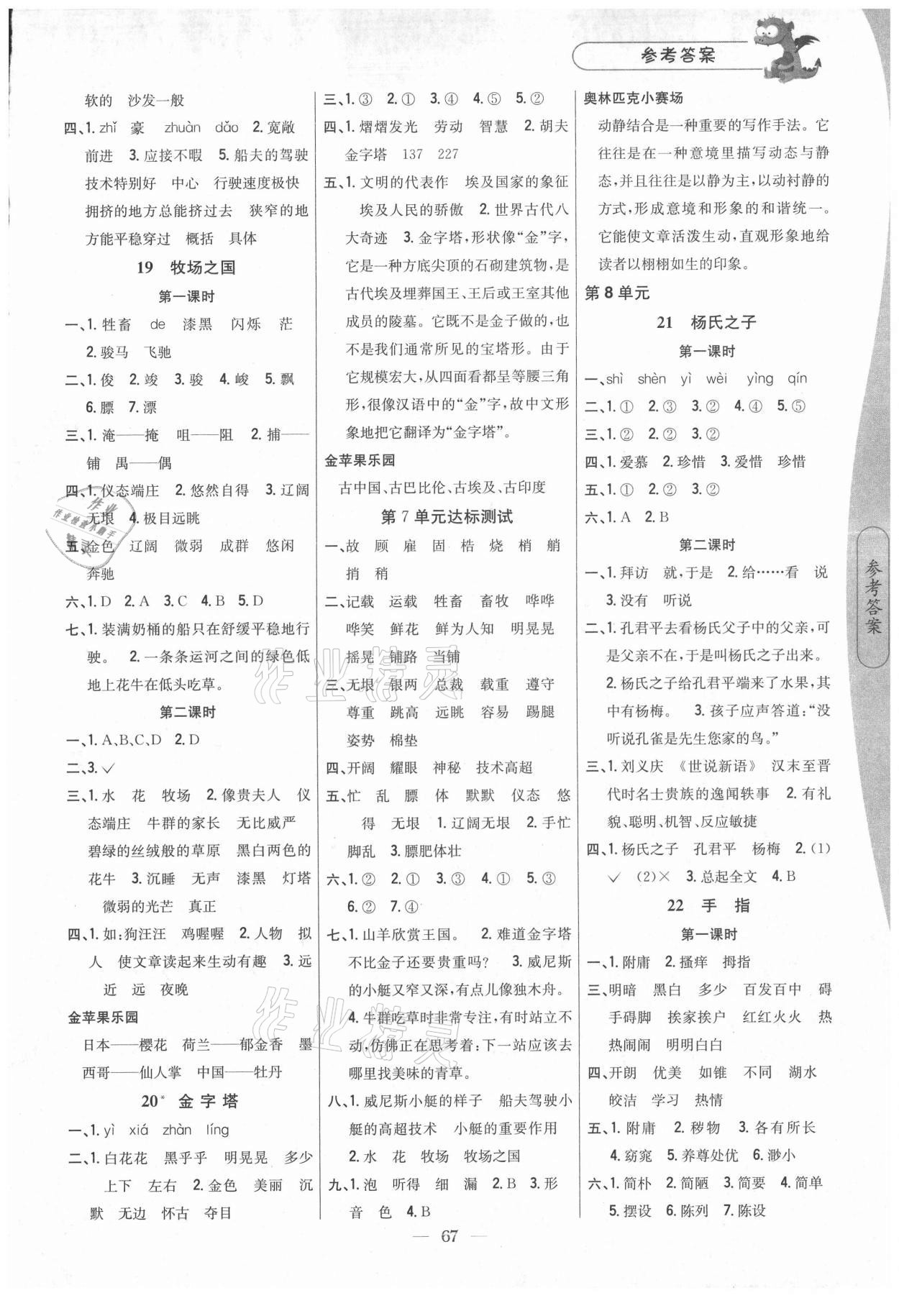 注:目前有些书本章节名称可能整理的还不是很完善,但都是按照顺序排列的,请同学们按照顺序仔细查找。练习册 2021年课时作业本五年级语文下册人教版吉林人民出版社 答案主要是用来给同学们做完题方便对答案用的,请勿直接抄袭。