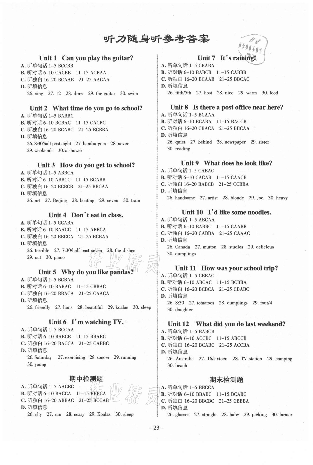 注:目前有些书本章节名称可能整理的还不是很完善,但都是按照顺序排列的,请同学们按照顺序仔细查找。练习册 2021年同步冲刺七年级英语下册人教版广东专版 答案主要是用来给同学们做完题方便对答案用的,请勿直接抄袭。