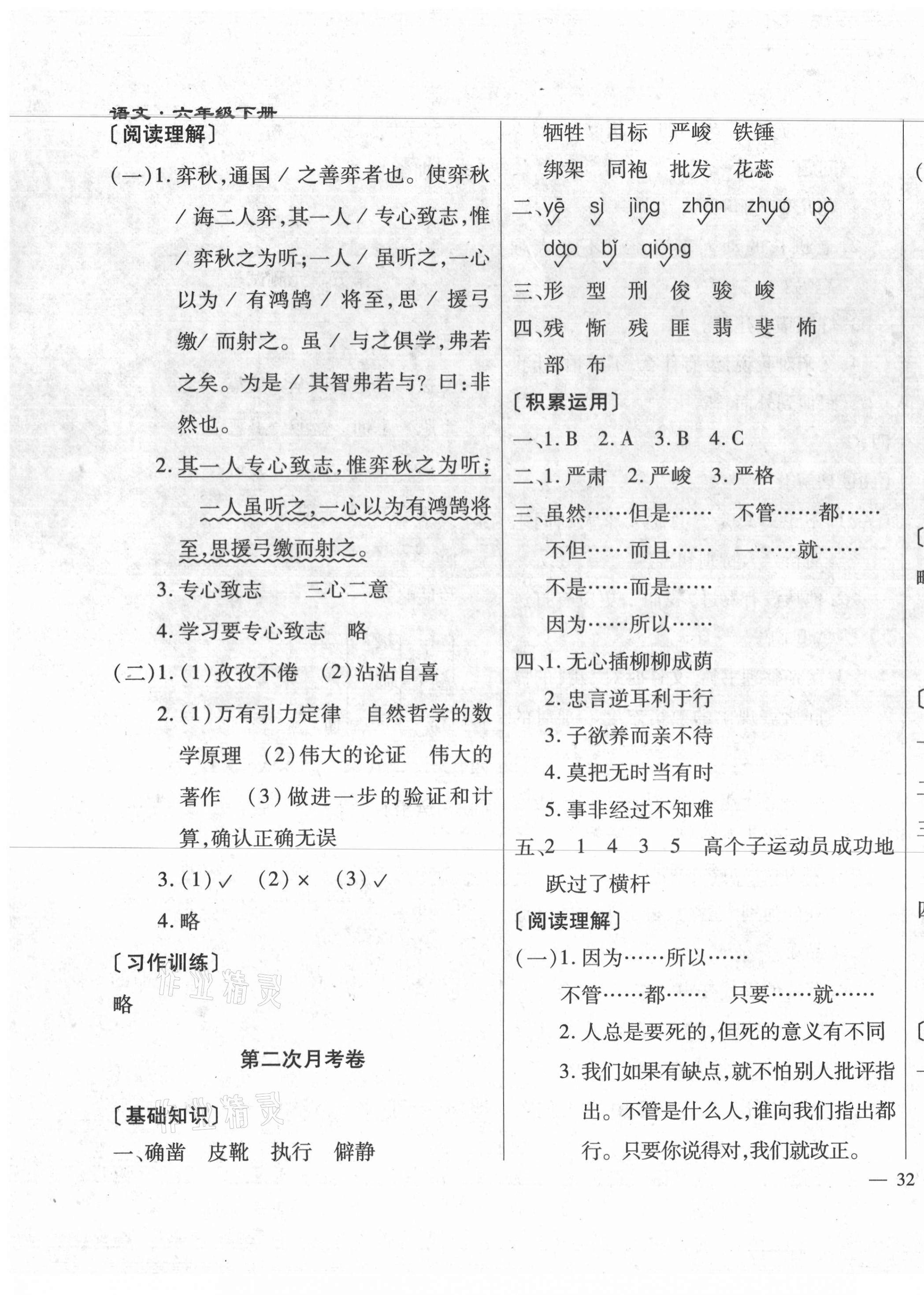 注:目前有些书本章节名称可能整理的还不是很完善,但都是按照顺序排列的,请同学们按照顺序仔细查找。练习册 2021年千里马单元测试卷六年级语文下册人教版 答案主要是用来给同学们做完题方便对答案用的,请勿直接抄袭。