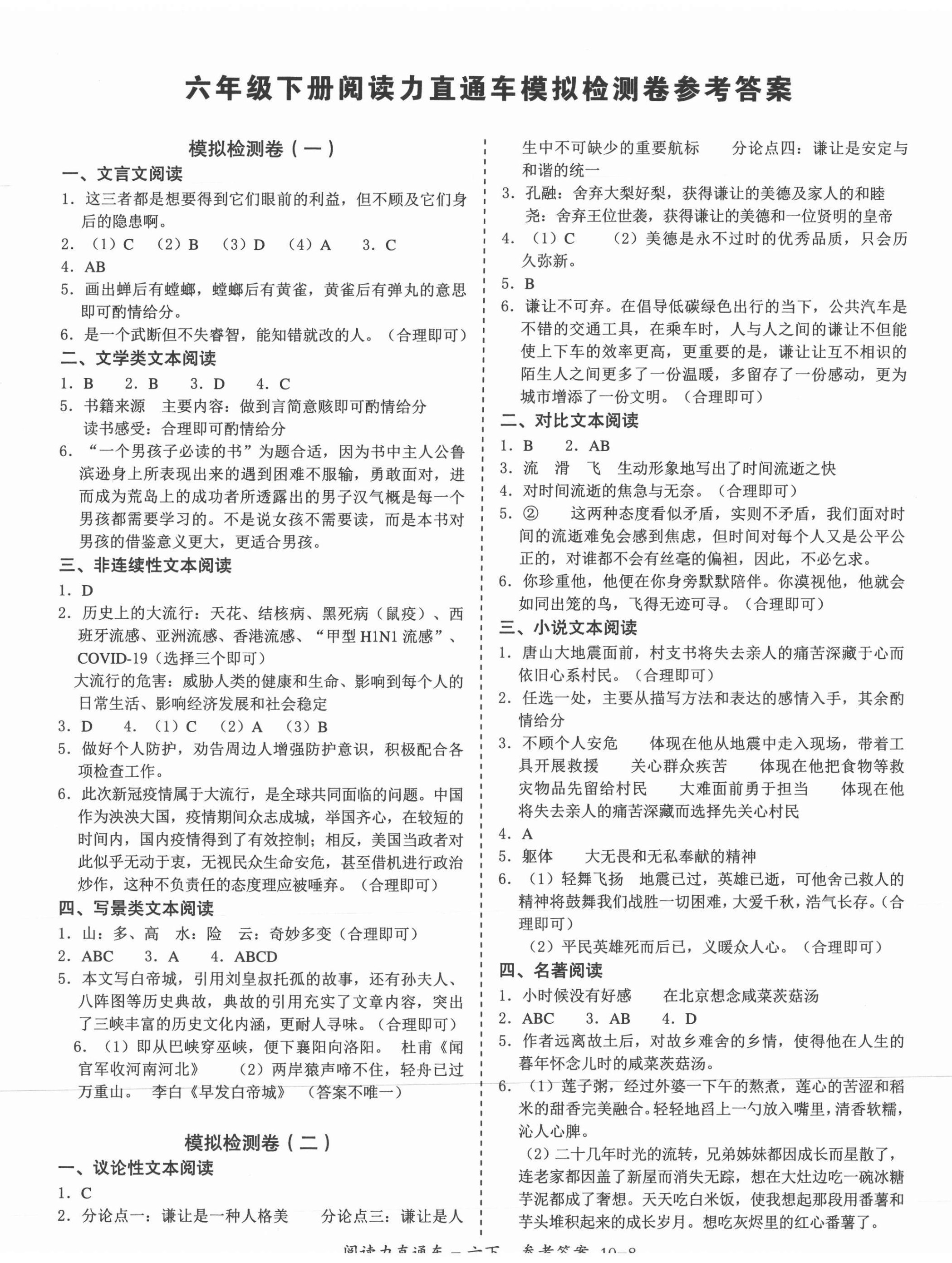 注:目前有些书本章节名称可能整理的还不是很完善,但都是按照顺序排列的,请同学们按照顺序仔细查找。练习册 2021年阅读力直通车六年级语文下册部编版 答案主要是用来给同学们做完题方便对答案用的,请勿直接抄袭。