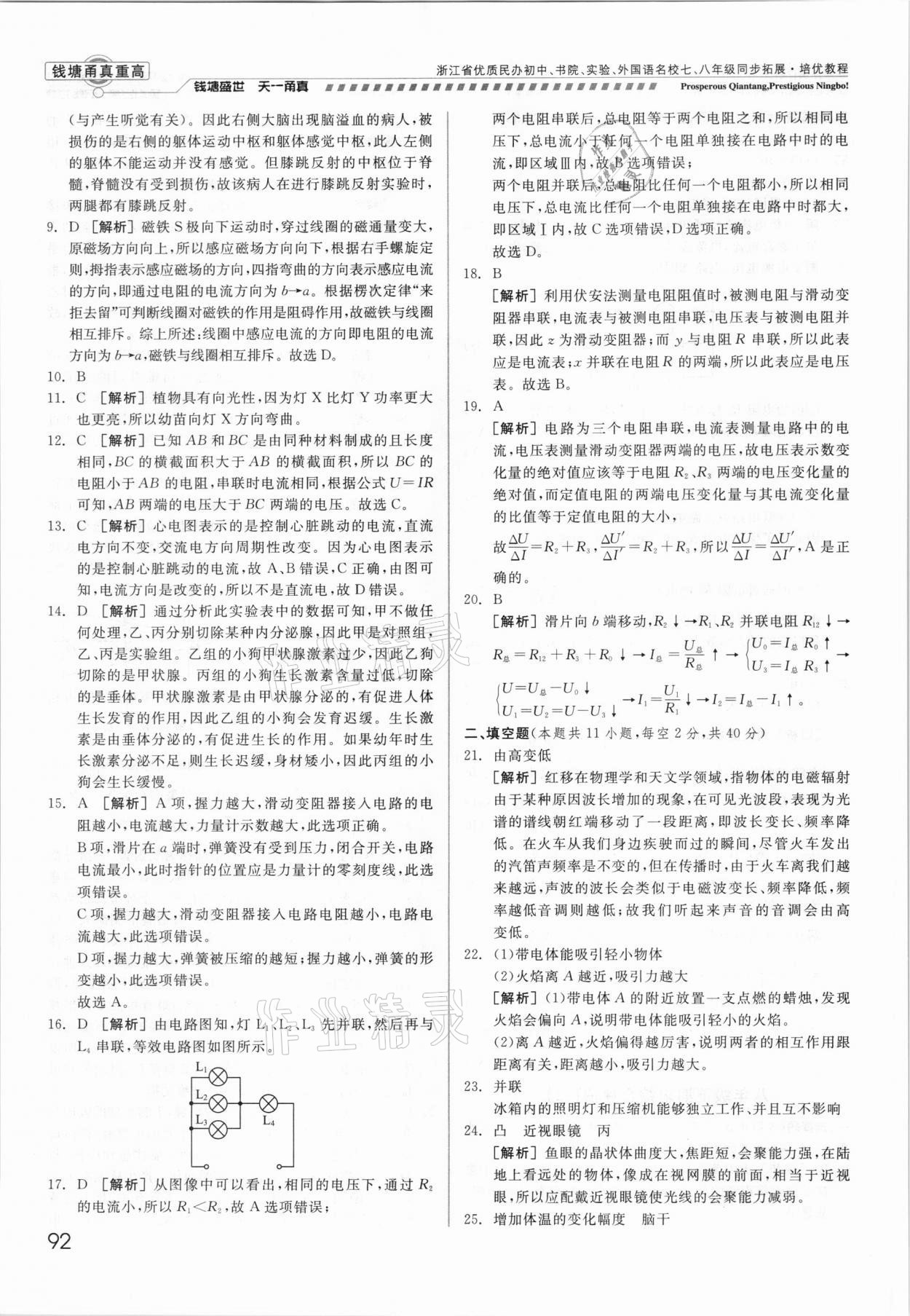 注:目前有些书本章节名称可能整理的还不是很完善,但都是按照顺序排列的,请同学们按照顺序仔细查找。练习册 2021年钱塘甬真重高八年级科学全一册华师大版 答案主要是用来给同学们做完题方便对答案用的,请勿直接抄袭。