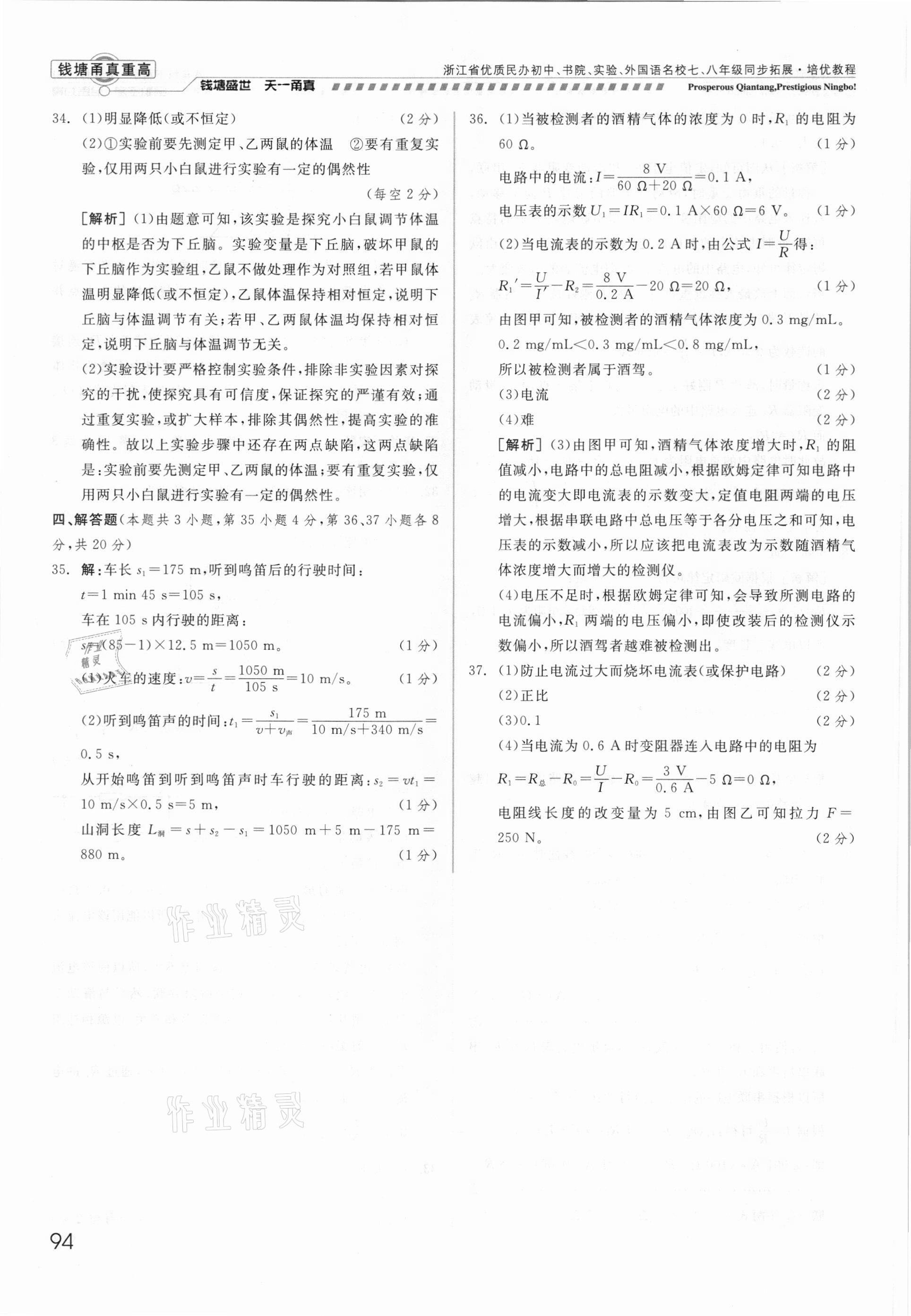 2021年钱塘甬真重高八年级科学全一册华师大版
