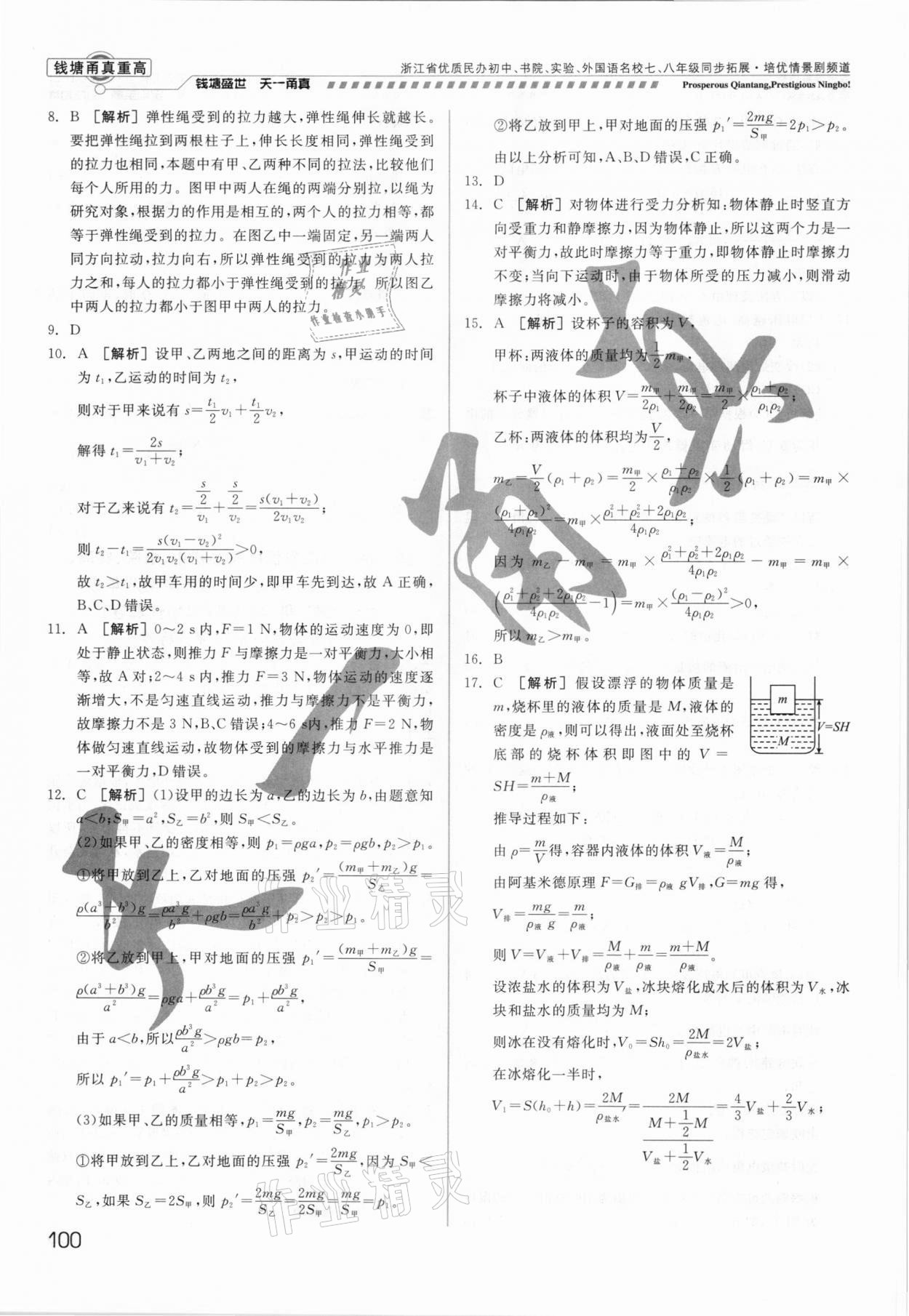 注:目前有些书本章节名称可能整理的还不是很完善,但都是按照顺序排列的,请同学们按照顺序仔细查找。练习册 2021年钱塘甬真重高八年级科学全一册华师大版 答案主要是用来给同学们做完题方便对答案用的,请勿直接抄袭。