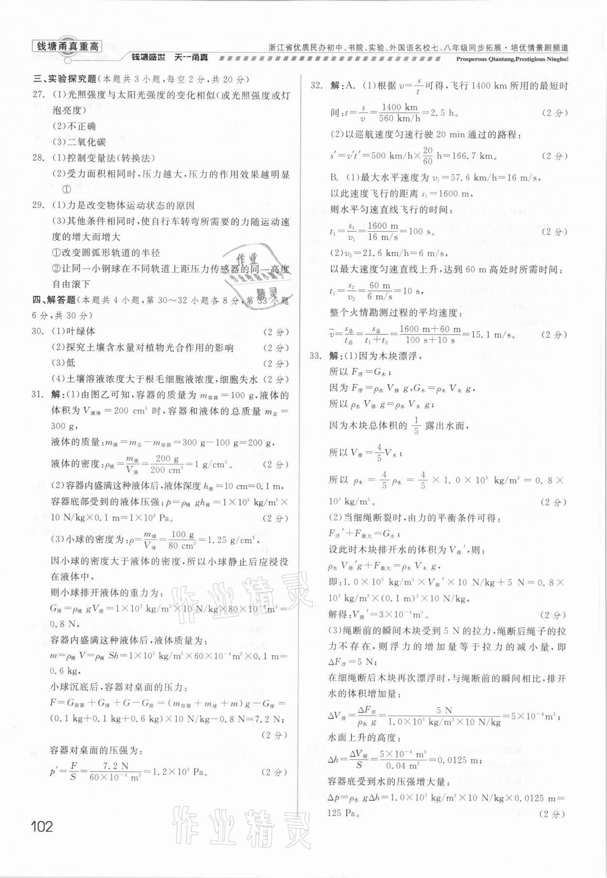 2021年钱塘甬真重高八年级科学全一册华师大版