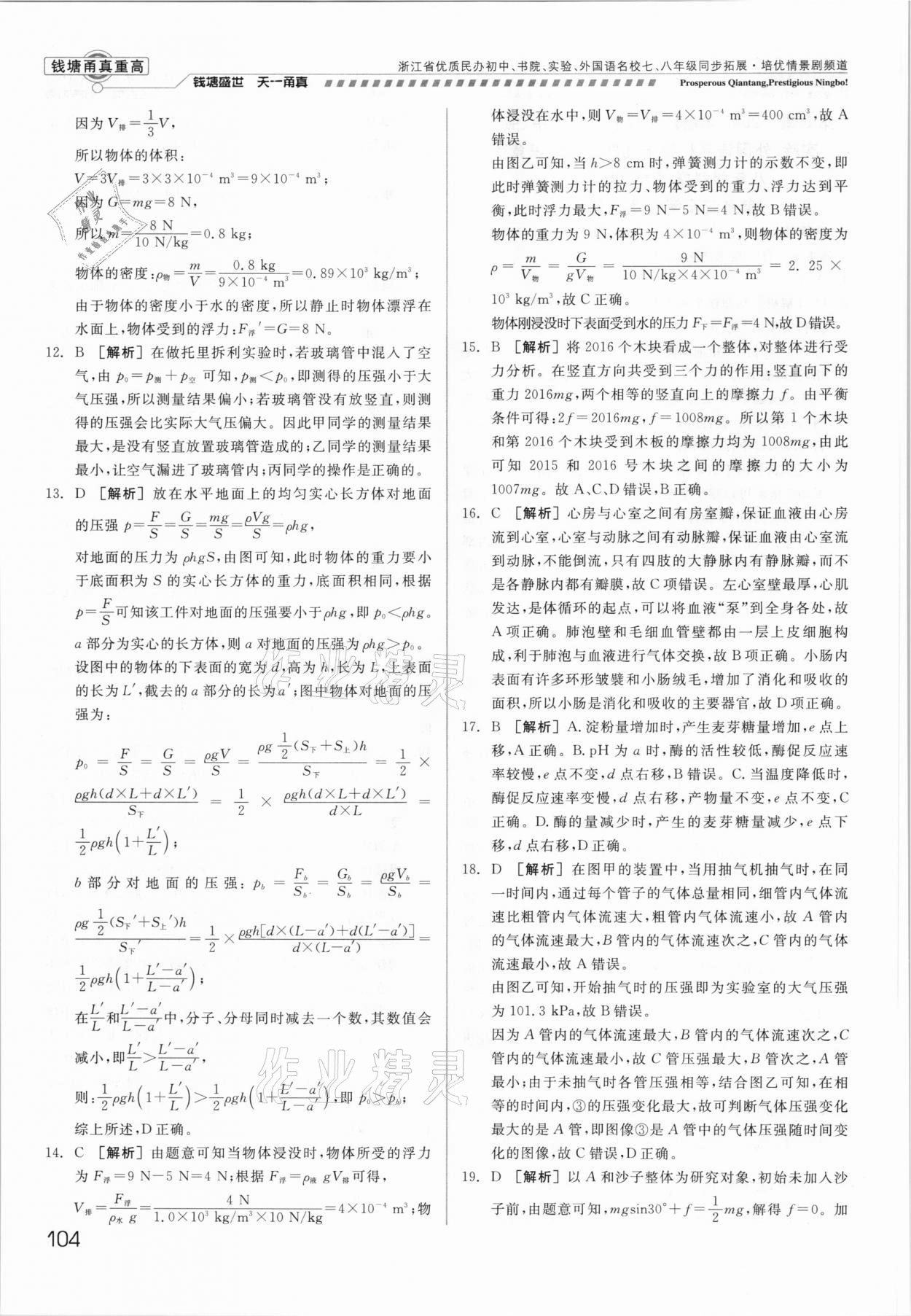 2021年钱塘甬真重高八年级科学全一册华师大版