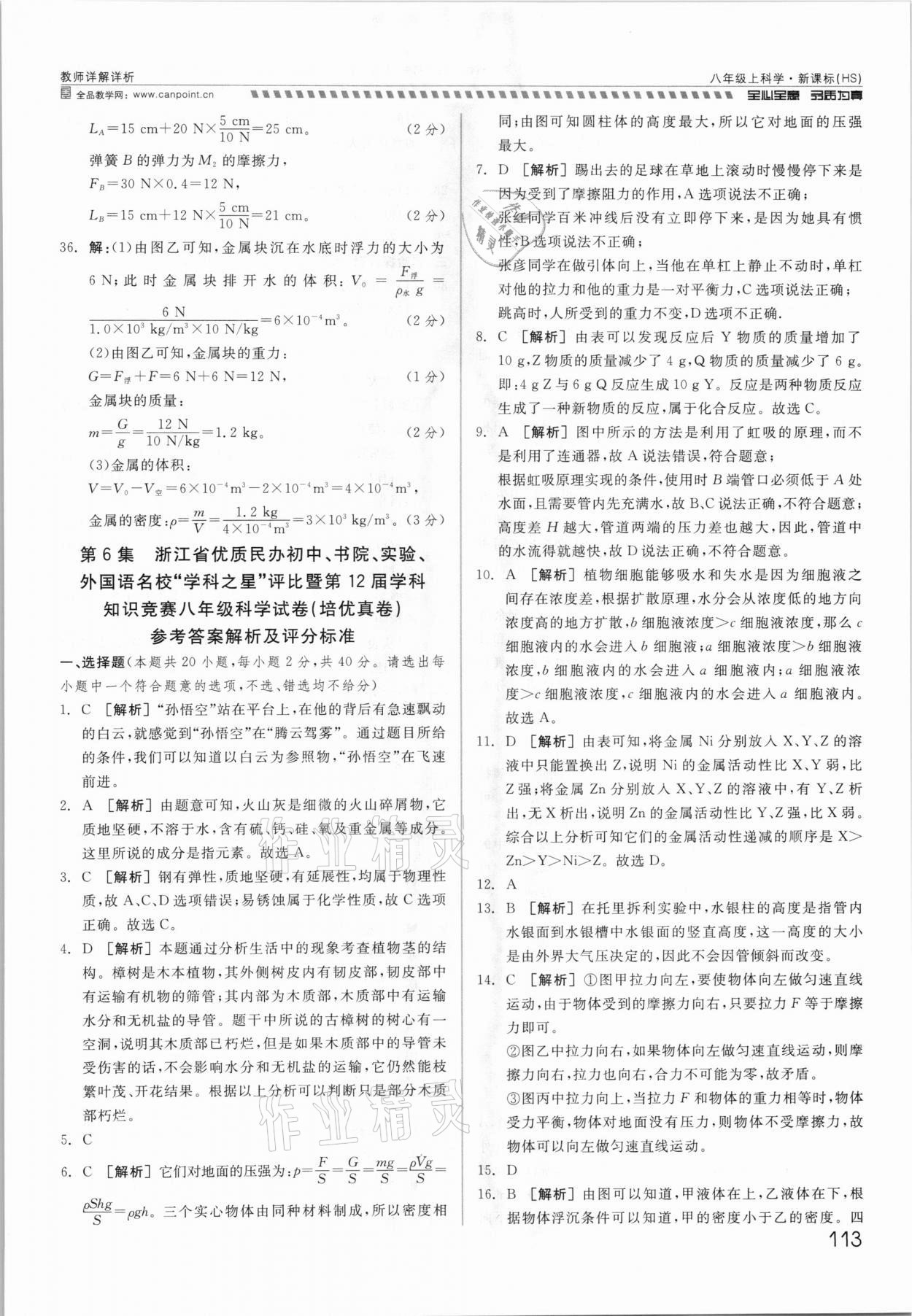 注:目前有些书本章节名称可能整理的还不是很完善,但都是按照顺序排列的,请同学们按照顺序仔细查找。练习册 2021年钱塘甬真重高八年级科学全一册华师大版 答案主要是用来给同学们做完题方便对答案用的,请勿直接抄袭。