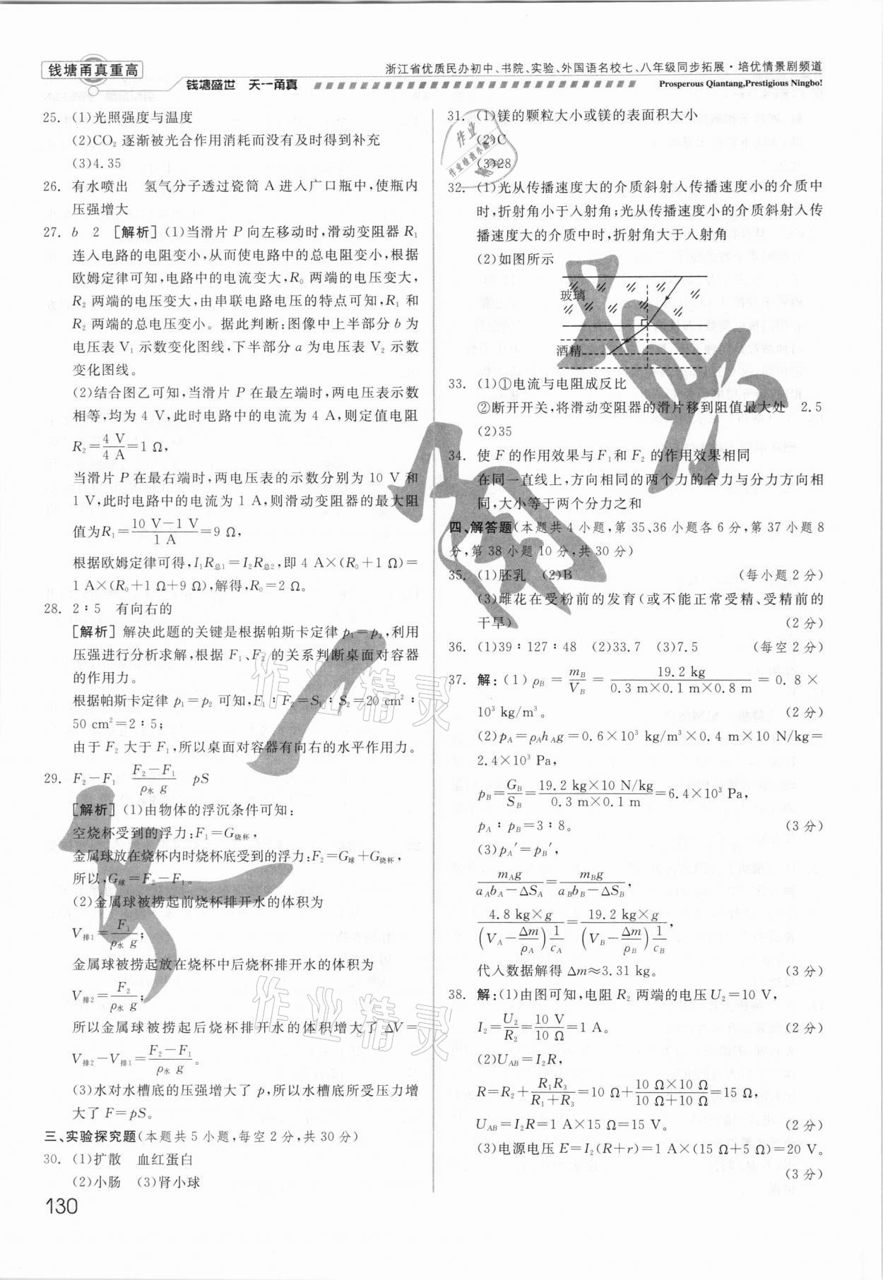 2021年钱塘甬真重高八年级科学全一册华师大版