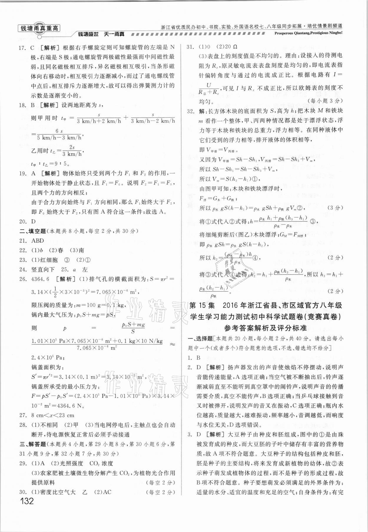 注:目前有些书本章节名称可能整理的还不是很完善,但都是按照顺序排列的,请同学们按照顺序仔细查找。练习册 2021年钱塘甬真重高八年级科学全一册华师大版 答案主要是用来给同学们做完题方便对答案用的,请勿直接抄袭。