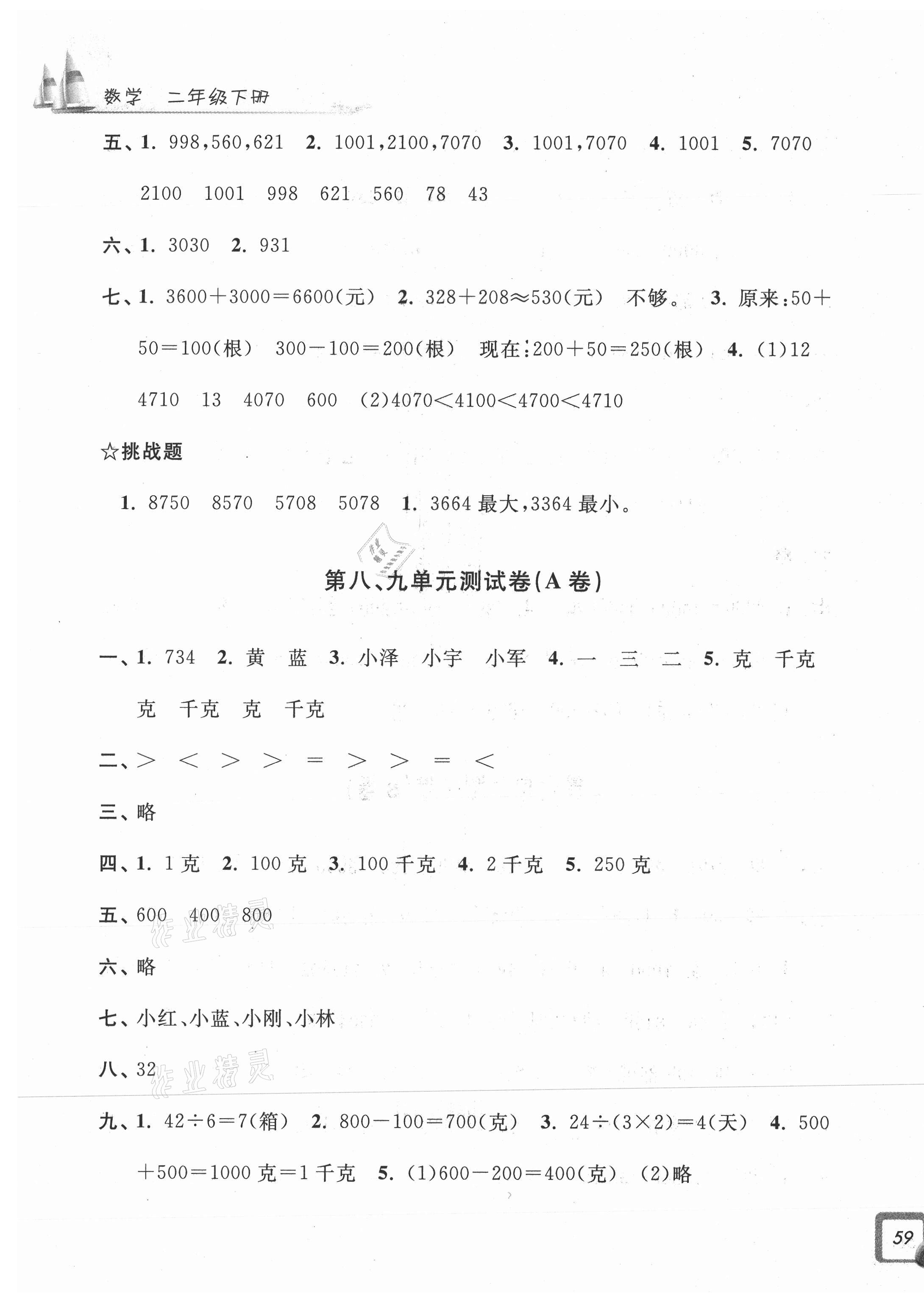 注:目前有些书本章节名称可能整理的还不是很完善,但都是按照顺序排列的,请同学们按照顺序仔细查找。练习册 2021年学力测评小学生单元测试卷二年级数学下册人教版 答案主要是用来给同学们做完题方便对答案用的,请勿直接抄袭。