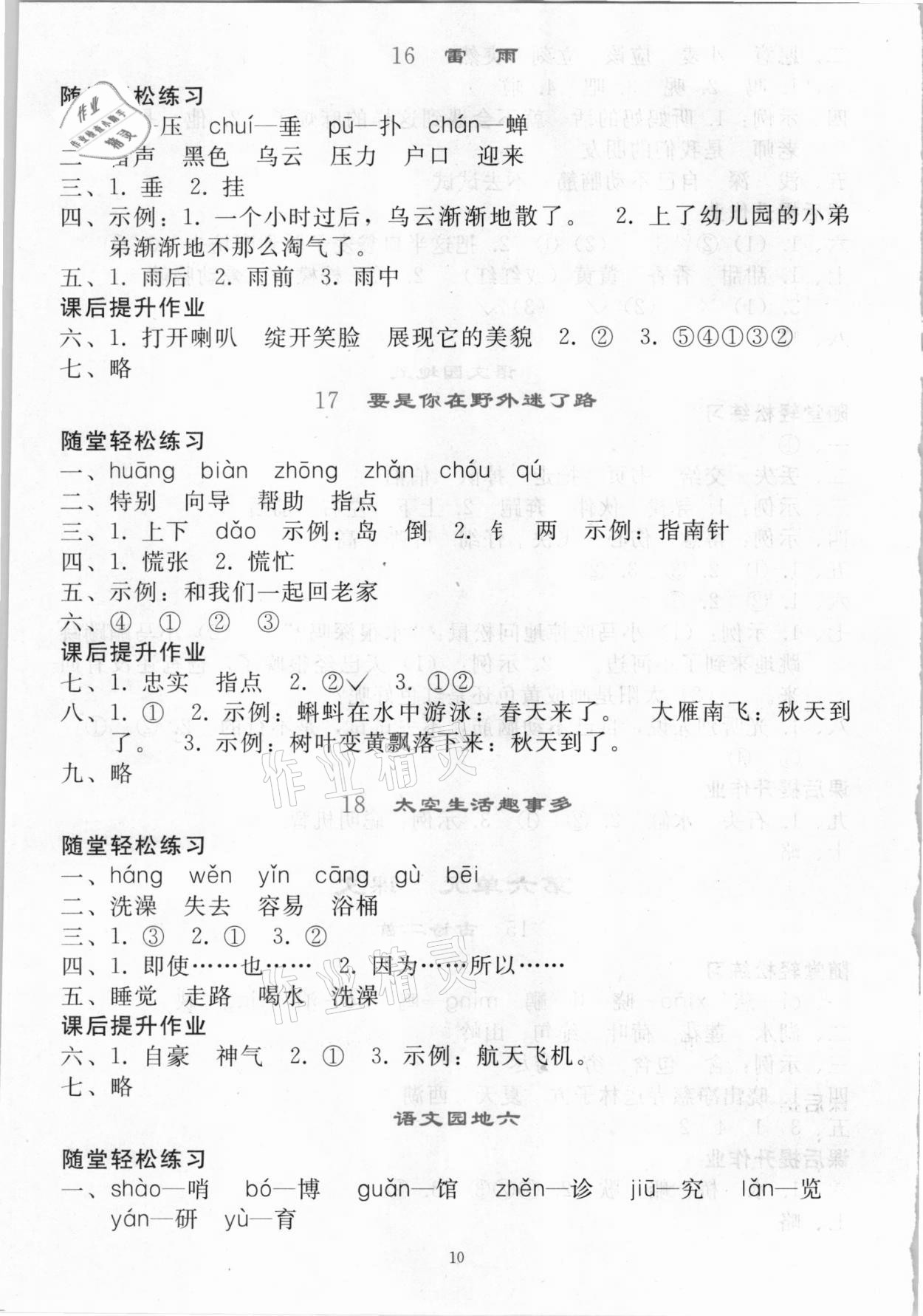 注:目前有些书本章节名称可能整理的还不是很完善,但都是按照顺序排列的,请同学们按照顺序仔细查找。练习册 2021年同步轻松练习二年级语文下册人教版吉林专版 答案主要是用来给同学们做完题方便对答案用的,请勿直接抄袭。