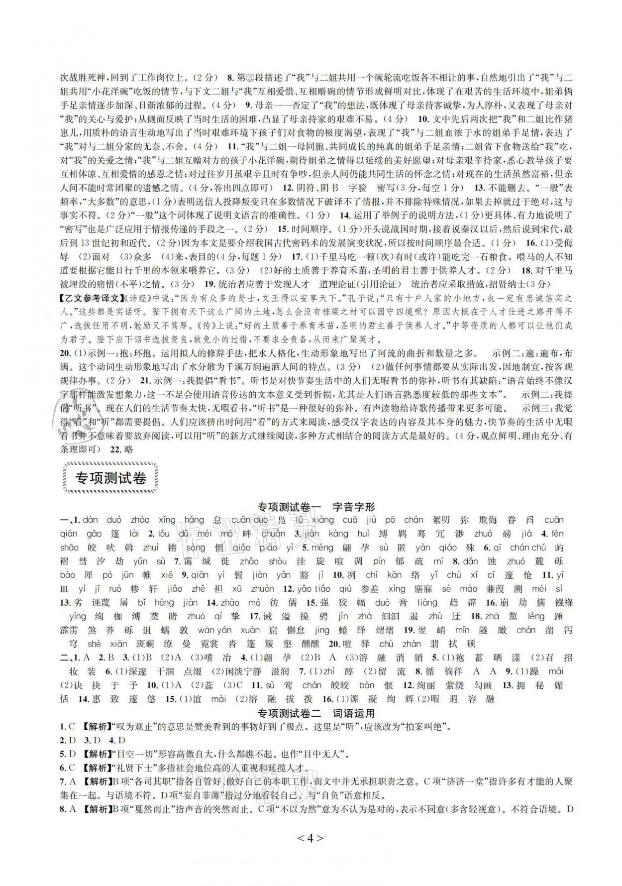 注:目前有些书本章节名称可能整理的还不是很完善,但都是按照顺序排列的,请同学们按照顺序仔细查找。练习册 2021年全优单元同步测试卷八年级语文下册人教版 答案主要是用来给同学们做完题方便对答案用的,请勿直接抄袭。