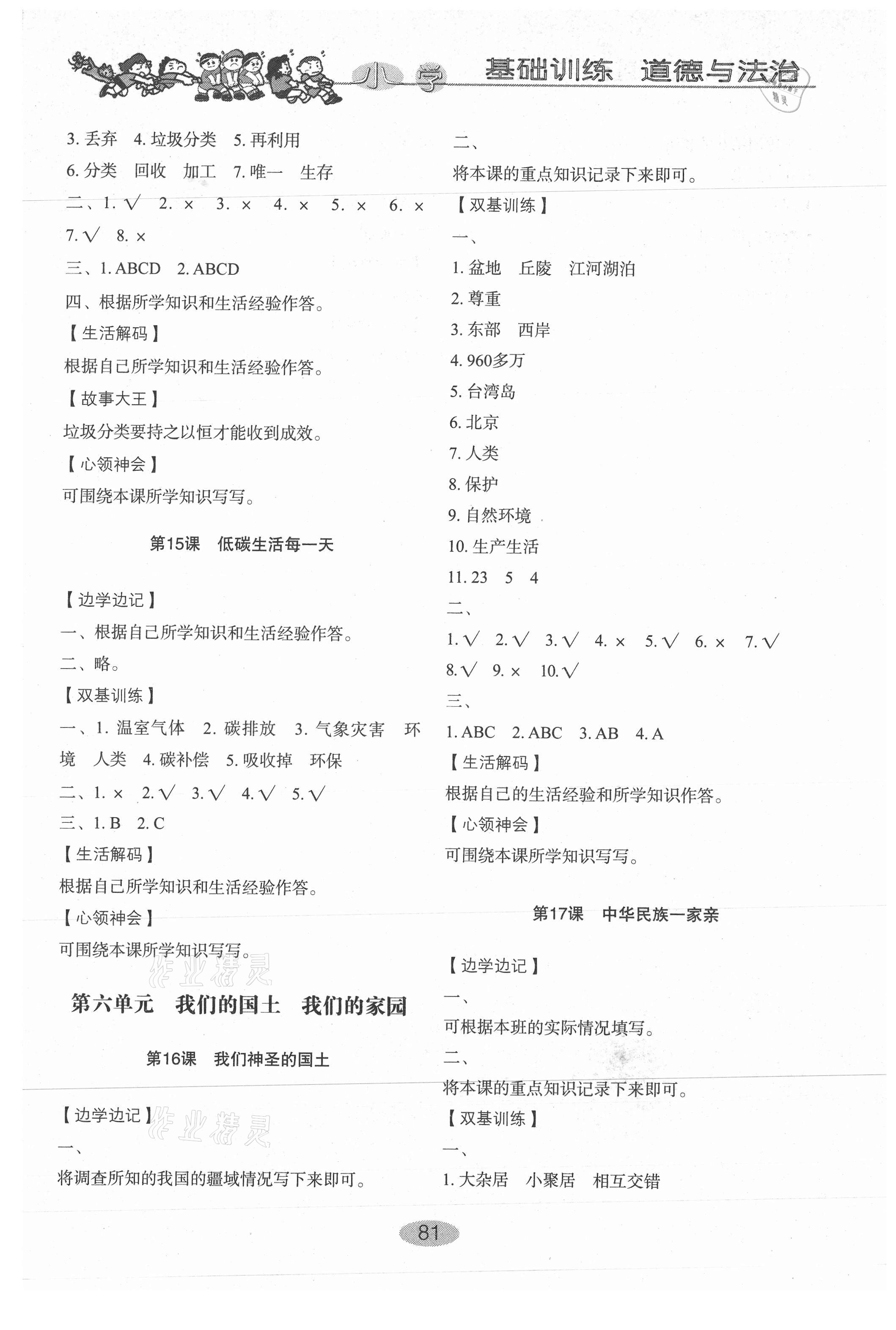 注:目前有些书本章节名称可能整理的还不是很完善,但都是按照顺序排列的,请同学们按照顺序仔细查找。练习册 2021年小学基础训练四年级道德与法治下册人教版54制山东教育出版社 答案主要是用来给同学们做完题方便对答案用的,请勿直接抄袭。