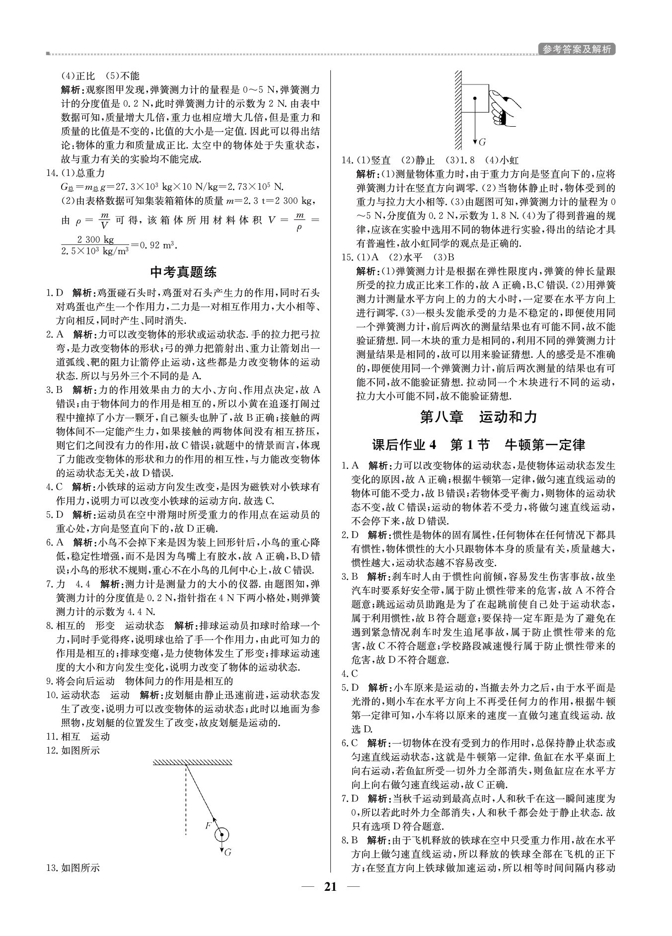 注:目前有些书本章节名称可能整理的还不是很完善,但都是按照顺序排列的,请同学们按照顺序仔细查找。练习册 2021年提分教练八年级物理下册人教版东莞专版 答案主要是用来给同学们做完题方便对答案用的,请勿直接抄袭。