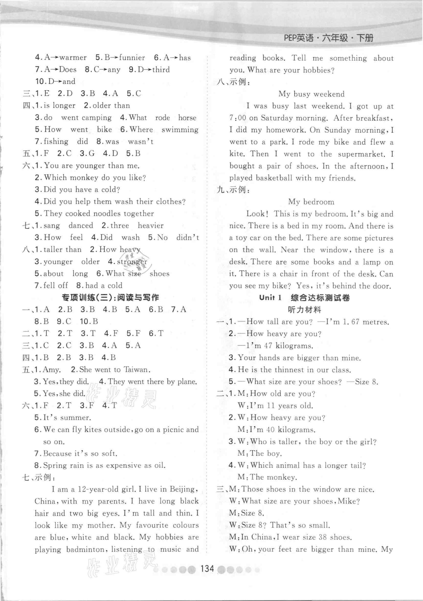 注:目前有些书本章节名称可能整理的还不是很完善,但都是按照顺序排列的,请同学们按照顺序仔细查找。练习册 2021年核心课堂六年级英语下册人教PEP版 答案主要是用来给同学们做完题方便对答案用的,请勿直接抄袭。