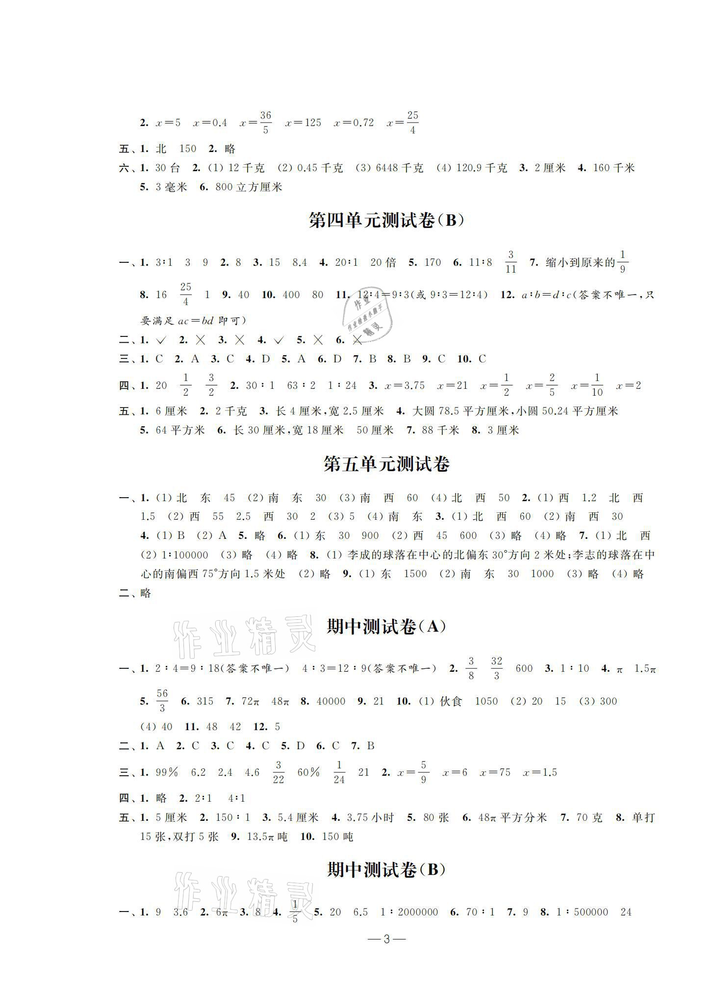 注:目前有些书本章节名称可能整理的还不是很完善,但都是按照顺序排列的,请同学们按照顺序仔细查找。练习册 2021年小学测控优化练习单元测试卷六年级数学下册苏教版 答案主要是用来给同学们做完题方便对答案用的,请勿直接抄袭。