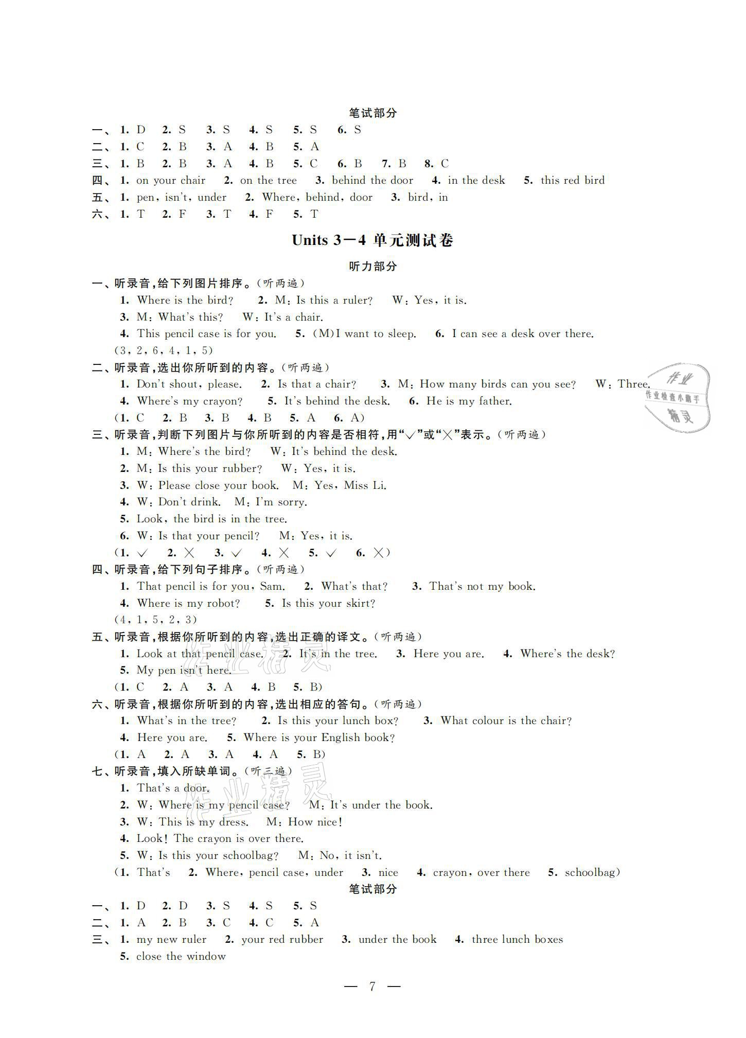 注:目前有些书本章节名称可能整理的还不是很完善,但都是按照顺序排列的,请同学们按照顺序仔细查找。练习册 2021年小学测控优化练习单元测试卷三年级英语下册译林版 答案主要是用来给同学们做完题方便对答案用的,请勿直接抄袭。