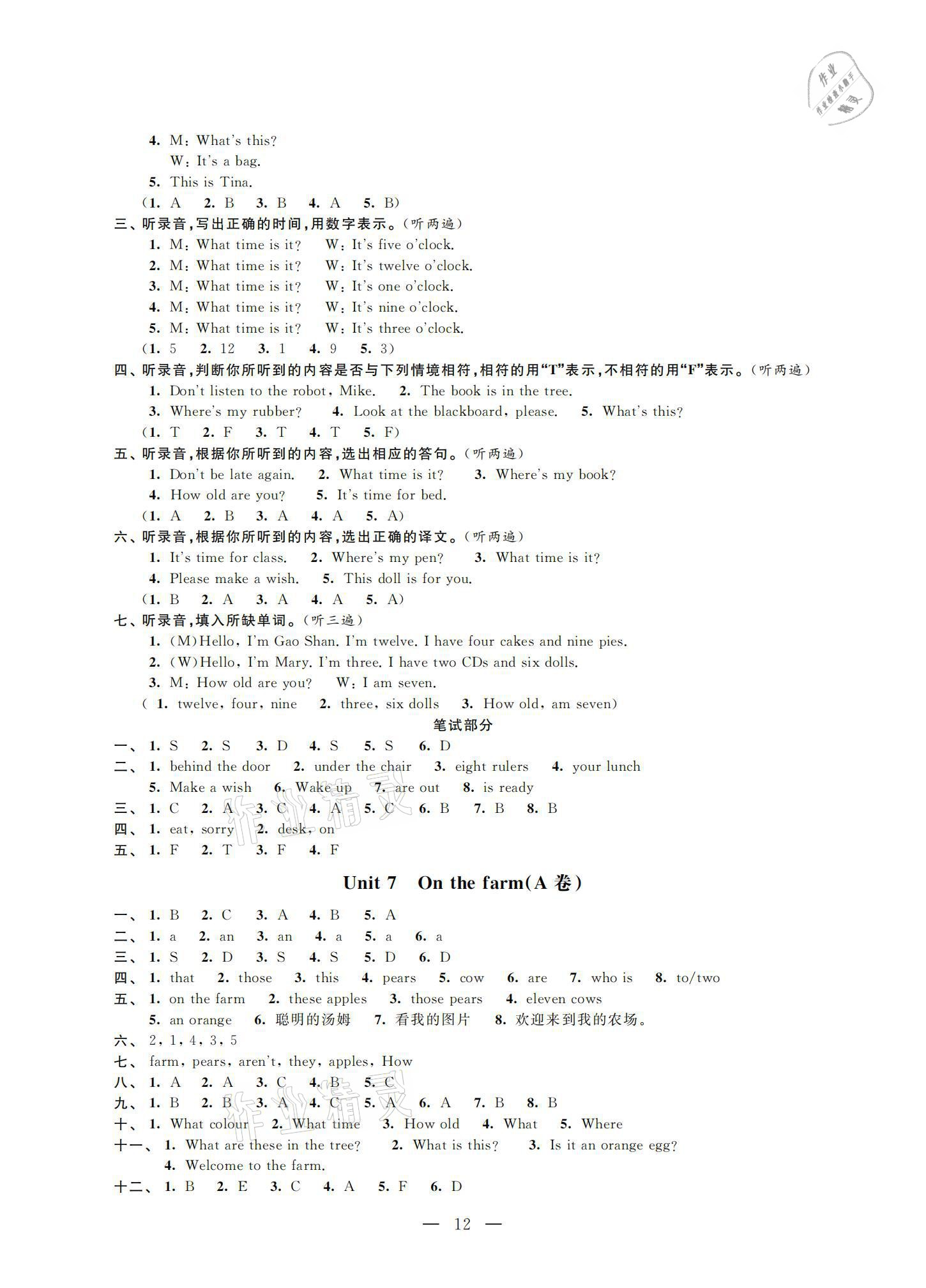 注:目前有些书本章节名称可能整理的还不是很完善,但都是按照顺序排列的,请同学们按照顺序仔细查找。练习册 2021年小学测控优化练习单元测试卷三年级英语下册译林版 答案主要是用来给同学们做完题方便对答案用的,请勿直接抄袭。