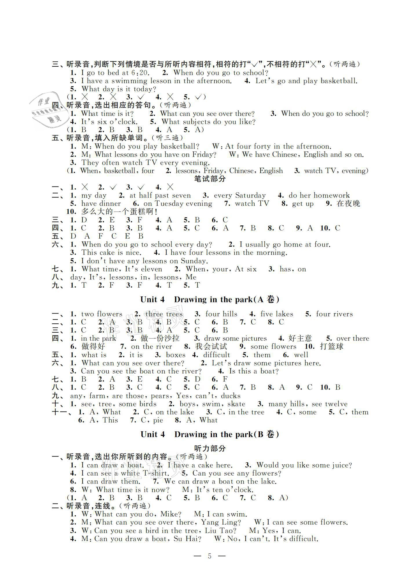 注:目前有些书本章节名称可能整理的还不是很完善,但都是按照顺序排列的,请同学们按照顺序仔细查找。练习册 2021年小学测控优化练习单元测试卷四年级英语下册译林版 答案主要是用来给同学们做完题方便对答案用的,请勿直接抄袭。
