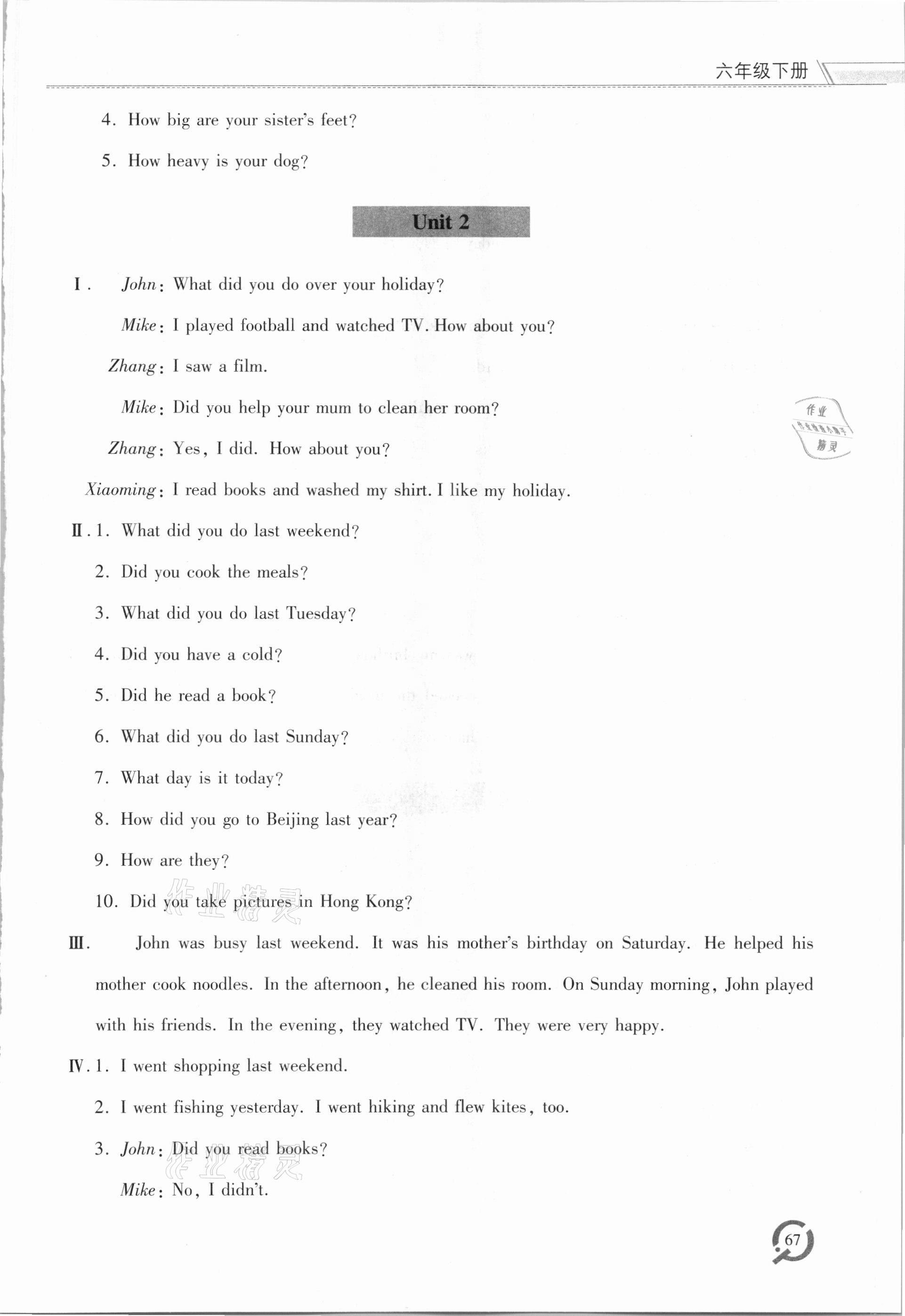 2021年同步练习册六年级英语下册人教版六三学制青岛出版社