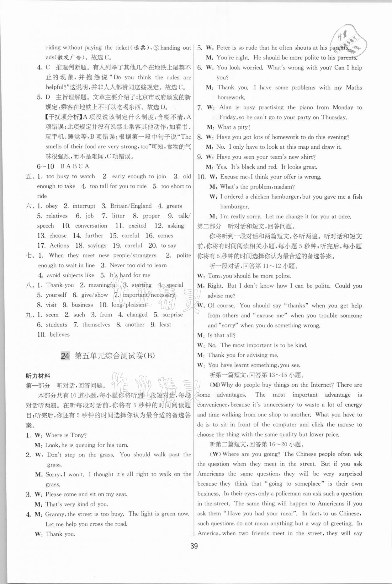 注:目前有些书本章节名称可能整理的还不是很完善,但都是按照顺序排列的,请同学们按照顺序仔细查找。练习册 2021年实验班提优大考卷八年级英语下册译林版江苏专用 答案主要是用来给同学们做完题方便对答案用的,请勿直接抄袭。