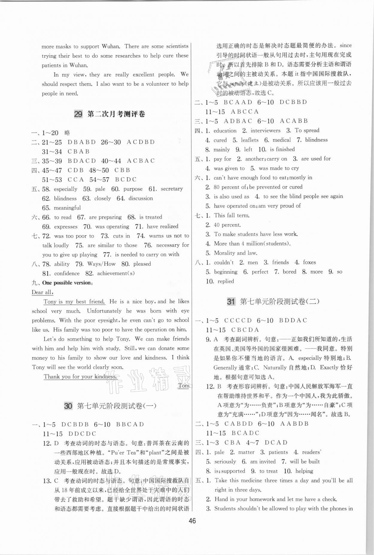 注:目前有些书本章节名称可能整理的还不是很完善,但都是按照顺序排列的,请同学们按照顺序仔细查找。练习册 2021年实验班提优大考卷八年级英语下册译林版江苏专用 答案主要是用来给同学们做完题方便对答案用的,请勿直接抄袭。