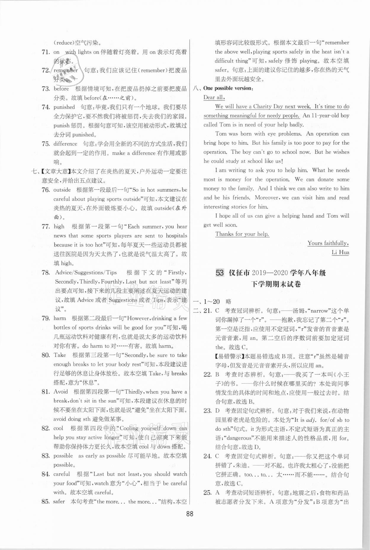 注:目前有些书本章节名称可能整理的还不是很完善,但都是按照顺序排列的,请同学们按照顺序仔细查找。练习册 2021年实验班提优大考卷八年级英语下册译林版江苏专用 答案主要是用来给同学们做完题方便对答案用的,请勿直接抄袭。