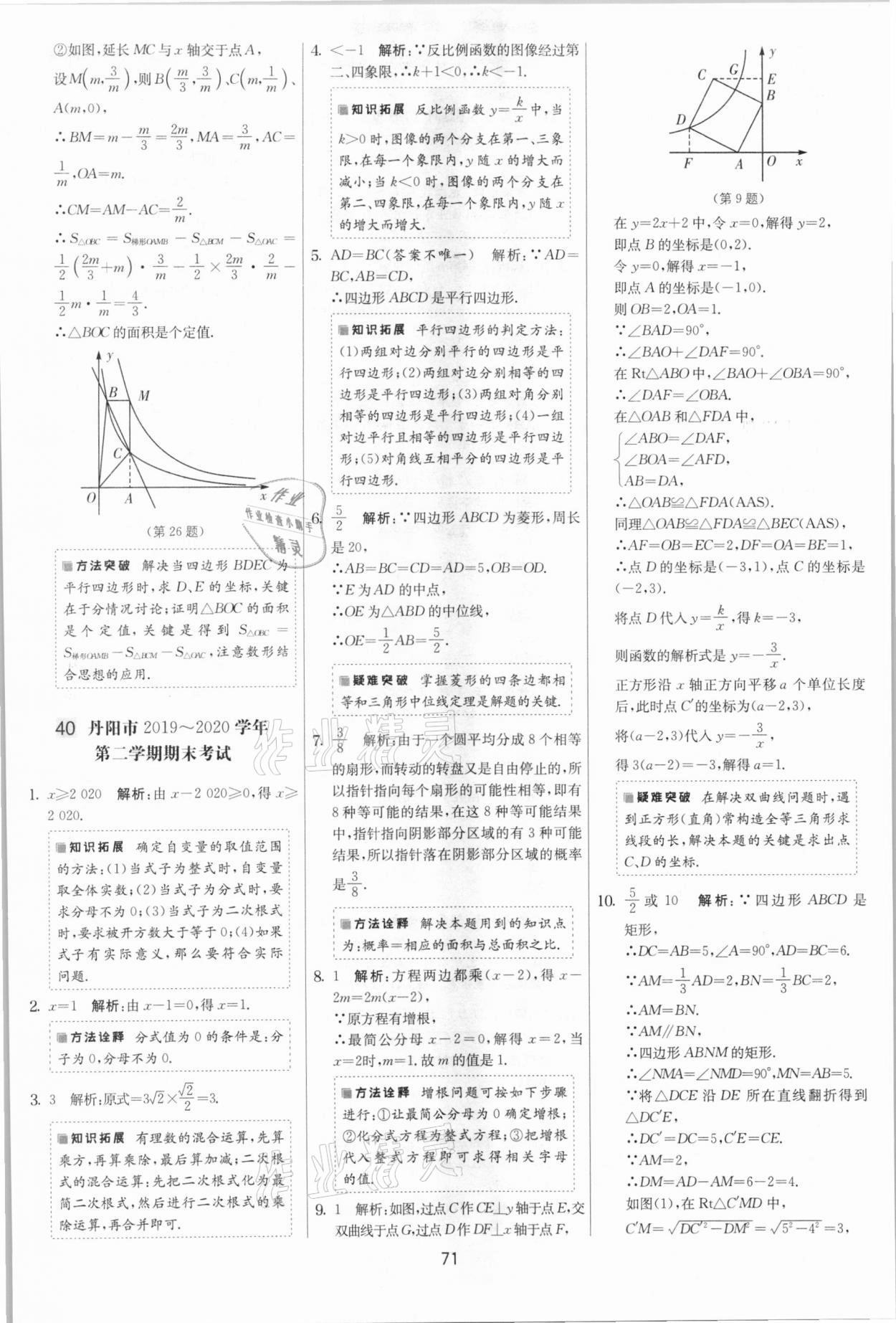 注:目前有些书本章节名称可能整理的还不是很完善,但都是按照顺序排列的,请同学们按照顺序仔细查找。练习册 2021年实验班提优大考卷八年级数学下册苏科版江苏专版 答案主要是用来给同学们做完题方便对答案用的,请勿直接抄袭。