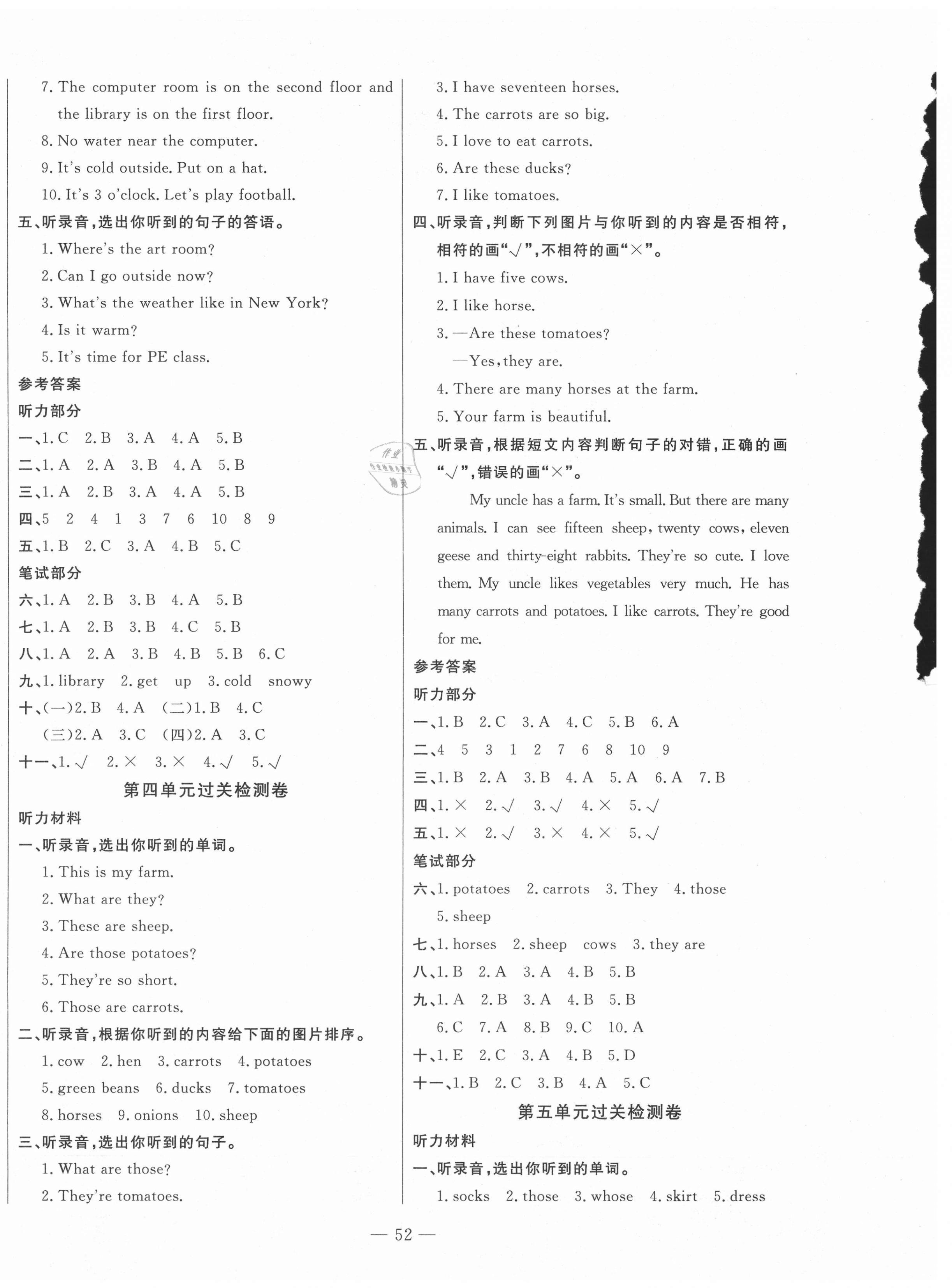 注:目前有些书本章节名称可能整理的还不是很完善,但都是按照顺序排列的,请同学们按照顺序仔细查找。练习册 2021年智慧课堂密卷100分单元过关检测四年级英语下册人教版 答案主要是用来给同学们做完题方便对答案用的,请勿直接抄袭。