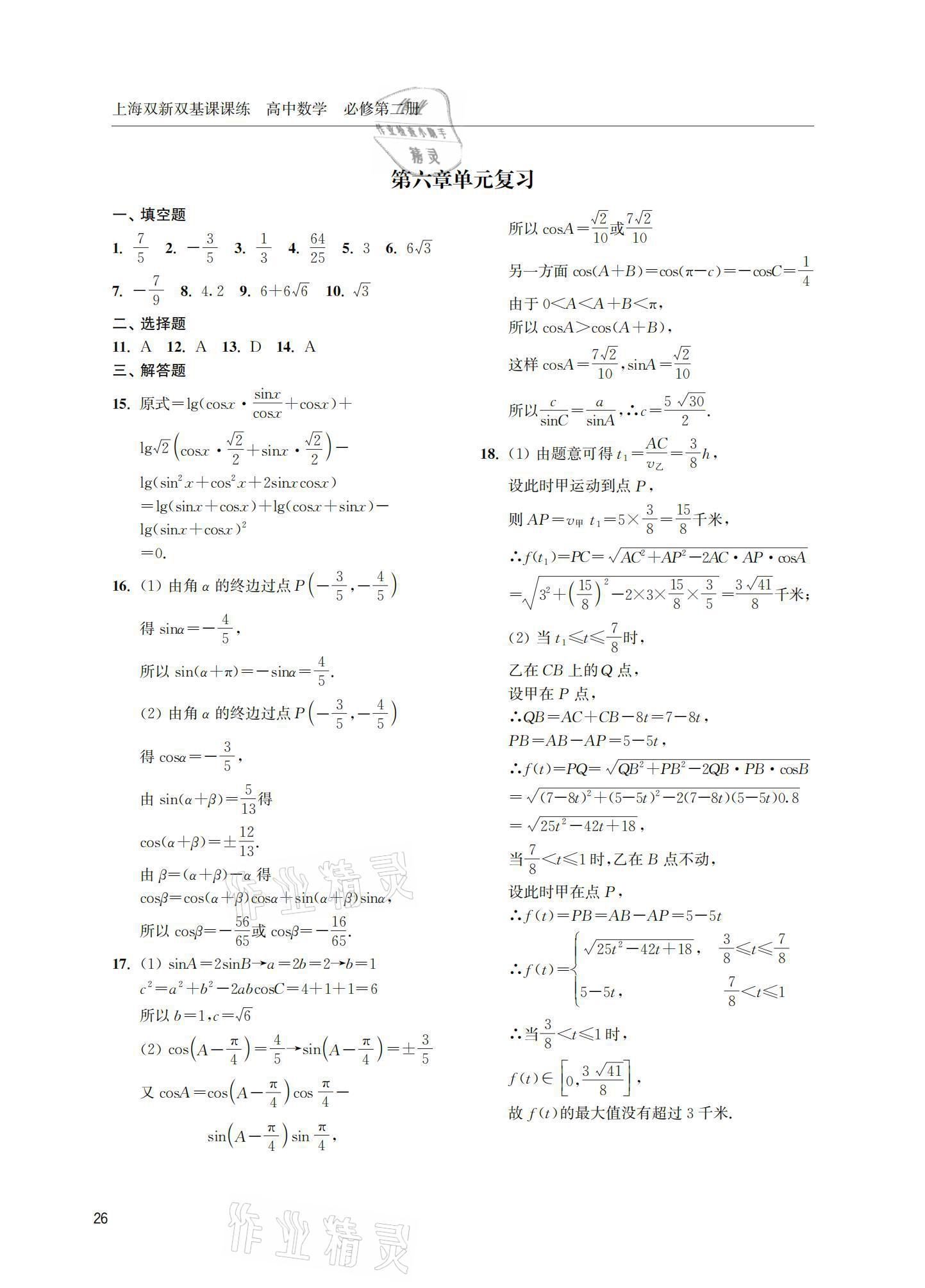 注:目前有些书本章节名称可能整理的还不是很完善,但都是按照顺序排列的,请同学们按照顺序仔细查找。练习册 2021年上海双新双基课课练高中数学必修第二册 答案主要是用来给同学们做完题方便对答案用的,请勿直接抄袭。