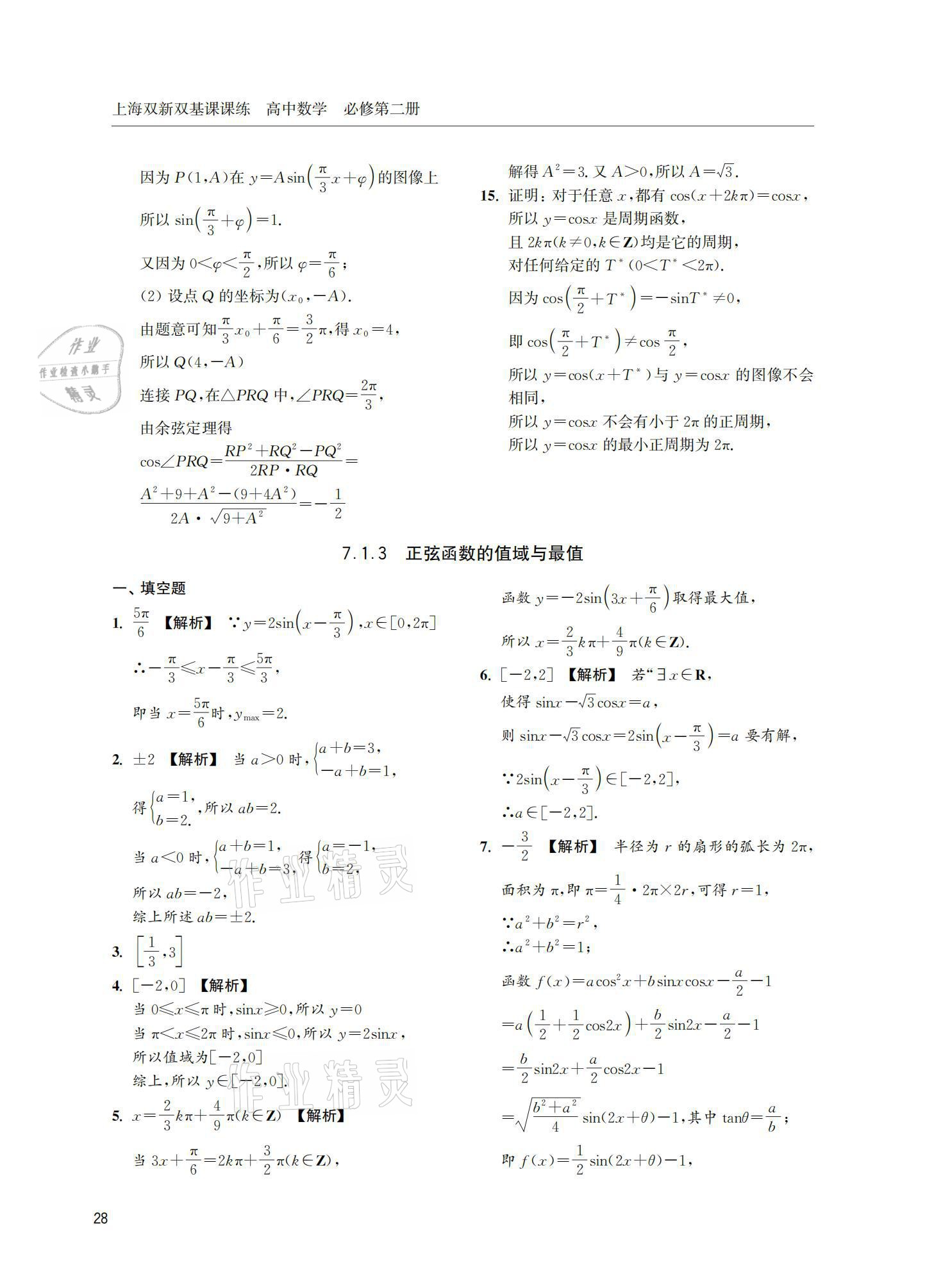 注:目前有些书本章节名称可能整理的还不是很完善,但都是按照顺序排列的,请同学们按照顺序仔细查找。练习册 2021年上海双新双基课课练高中数学必修第二册 答案主要是用来给同学们做完题方便对答案用的,请勿直接抄袭。